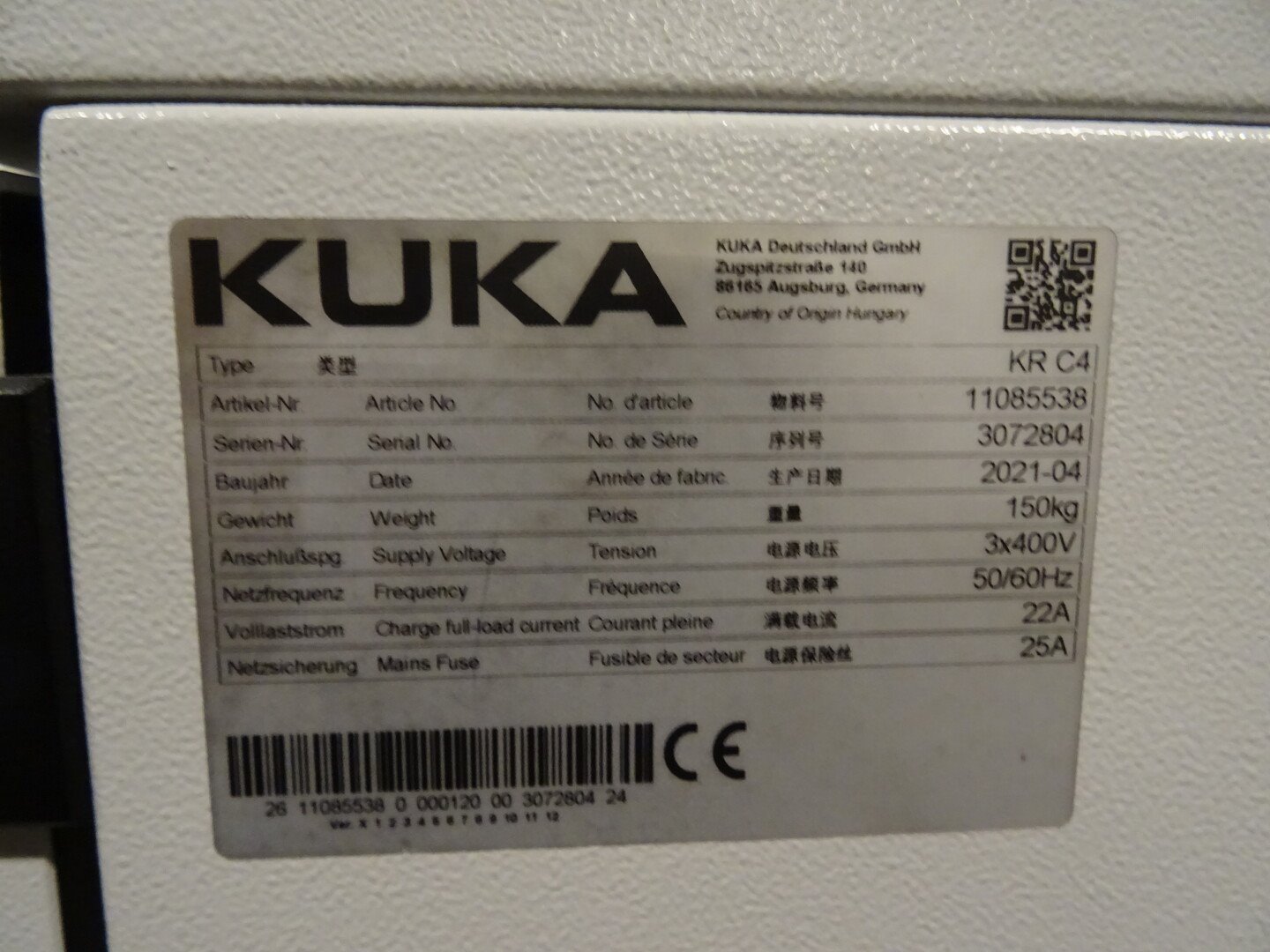 Type: KR150-R2700-2-FLR, yoc: 2021, weight: 1.104kg, serial number: 1075564