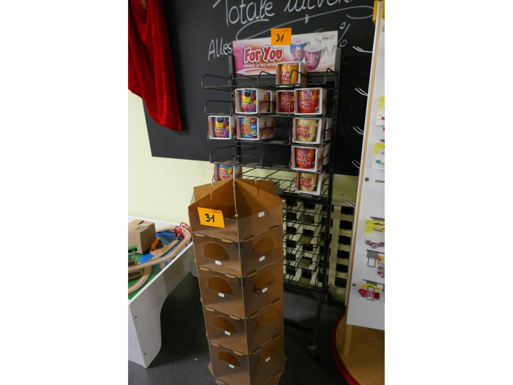 Metalen mobiel winkelrekje met 14 koffiekopjes <br /> Kartonnen display