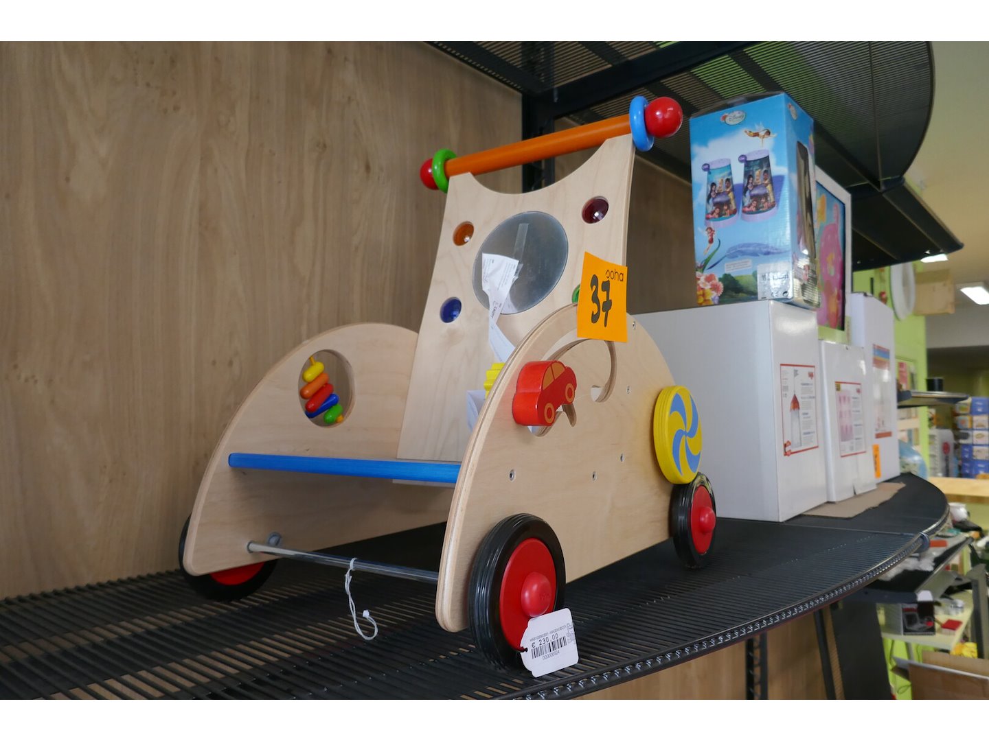 Loopwagen met speel elementen<br /> *merk: HABA<br /> info : winkelprijs €230