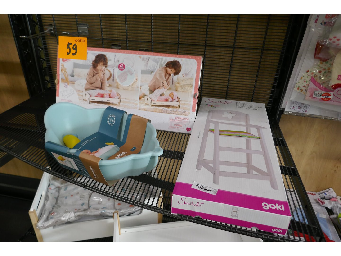 3 stuks : bed - stoel - bad<br /> *merk : GOKI/POMEA/COROLLE<br /> info : winkelprijs €85