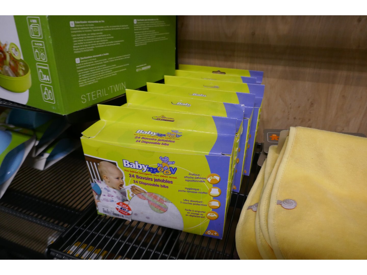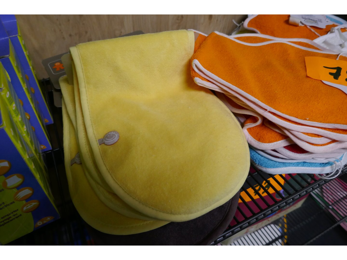 Slabbetjes 32 stuks : wegwerp -schouderdoekjes - tutdoekjes - enz..<br /> *merk : BABYBOOM/BABYMOUR/CARAMELLA<br /> info : winkelprijs €280