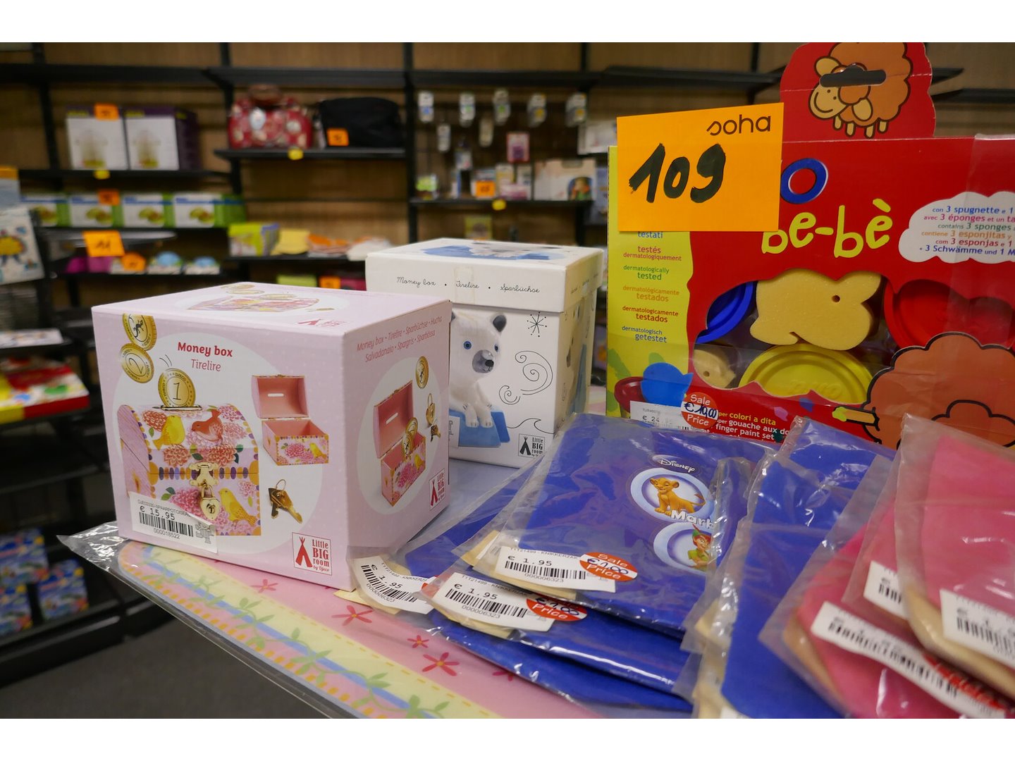 Spaarpotten - 14 knikkerzakken - vingerverf - 11 balonnen - 2 waterbalonnen - bureaubeschermer<br /> *merk : DJECO/HABA