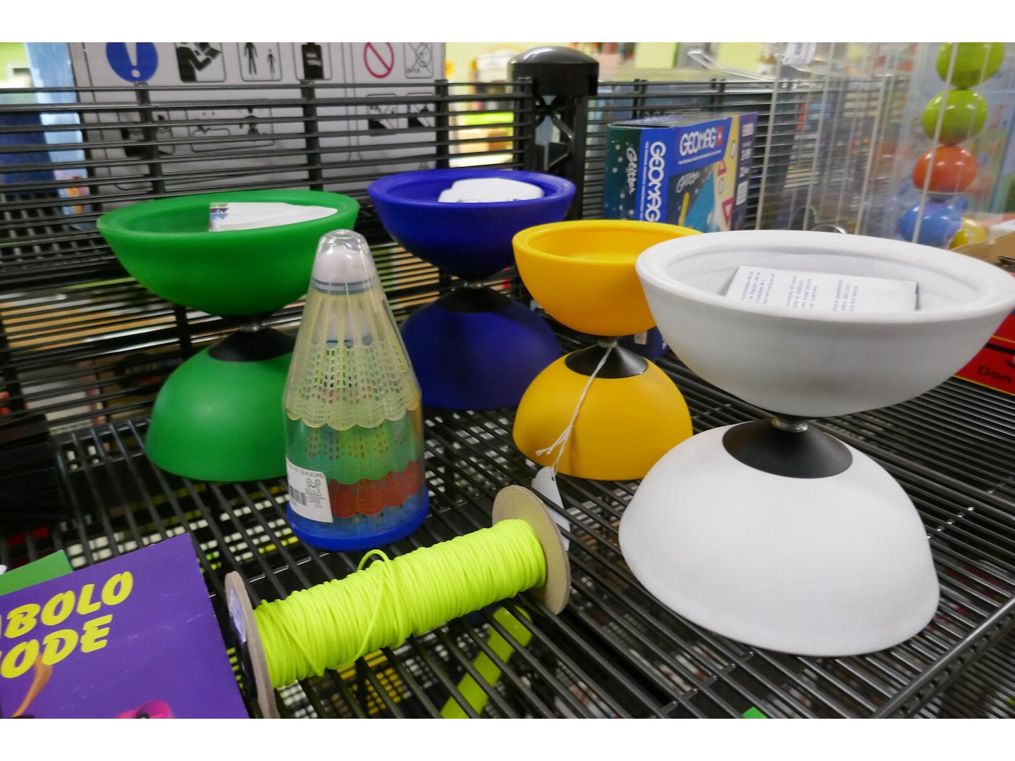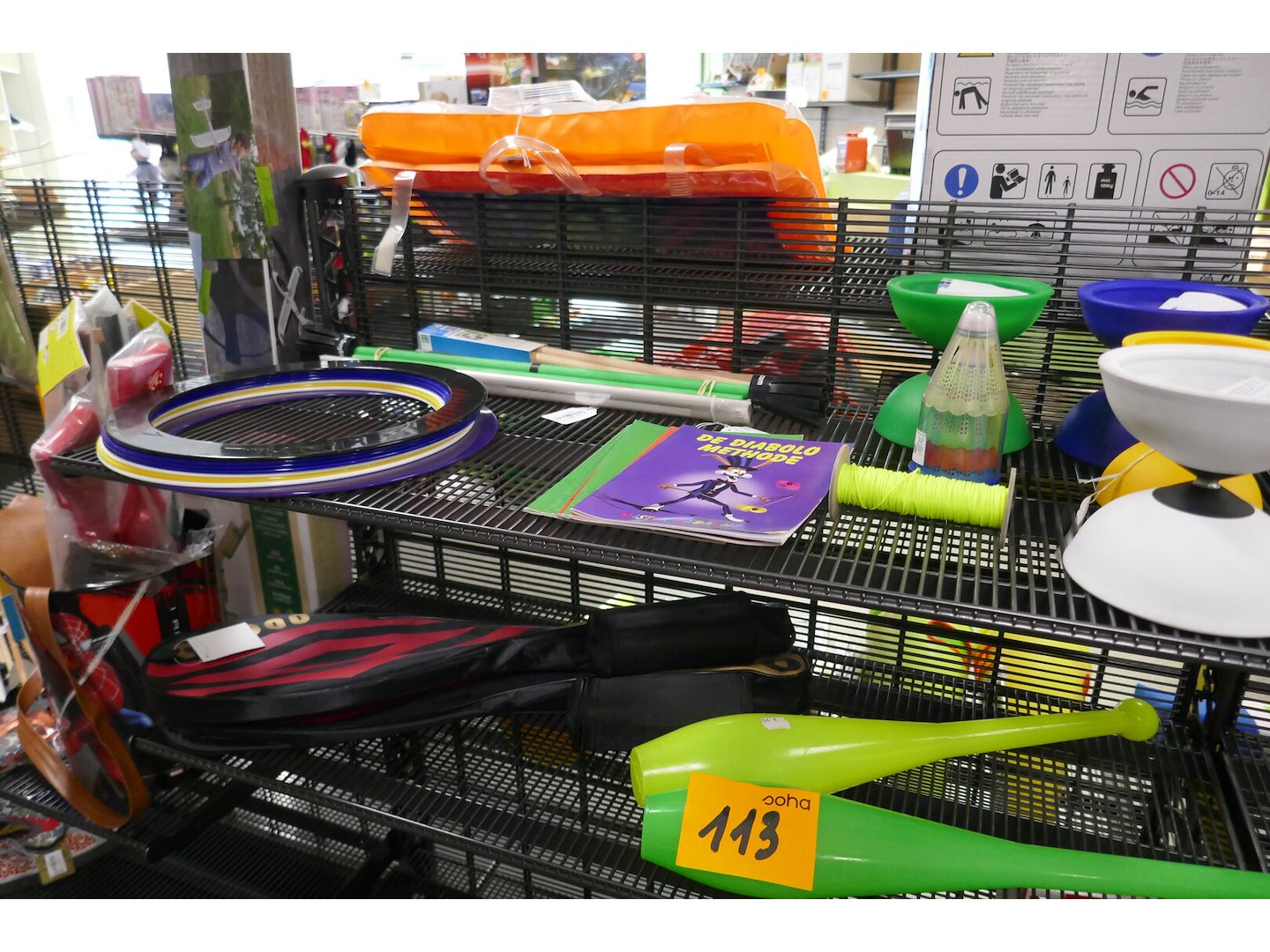 5 diabolo - 7 boekjes - 8ringer - flowerstick -3 bellenblaasstokken - 2 kegels -bubble machine - 2 badmintonset - shutters