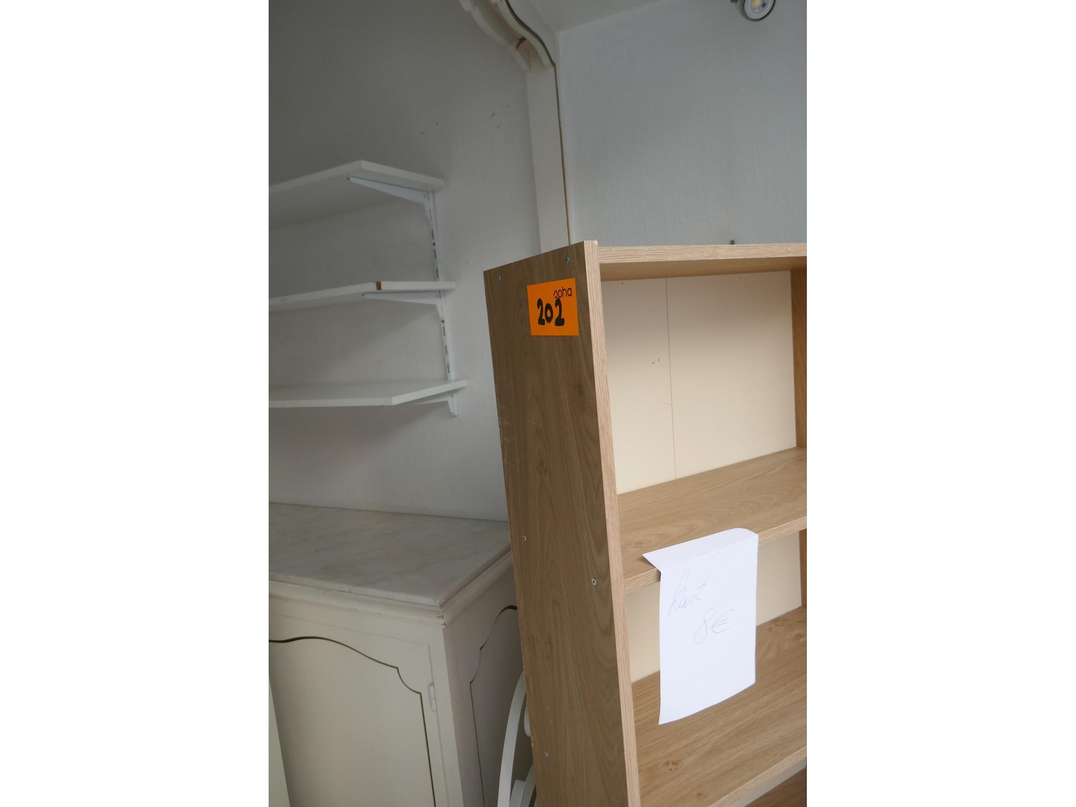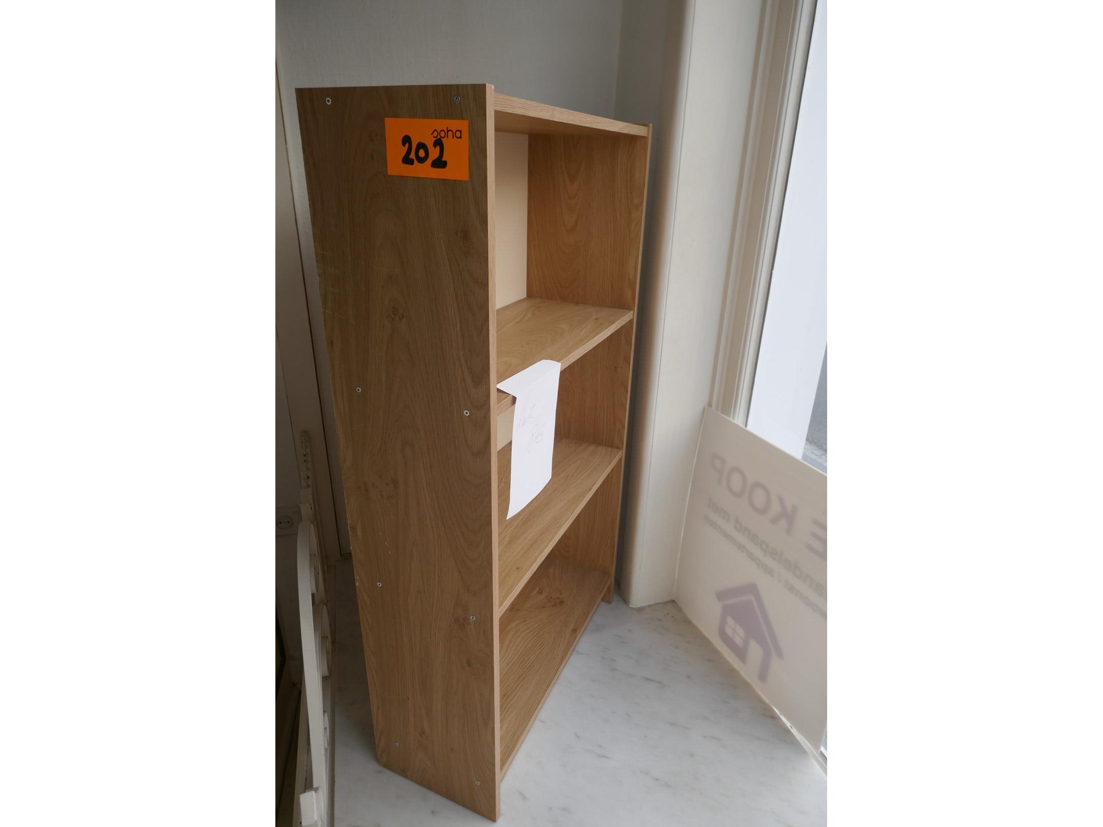 Houten boekenkastje + houten winkeldisplay ( lichte beschadiging hoeken )
