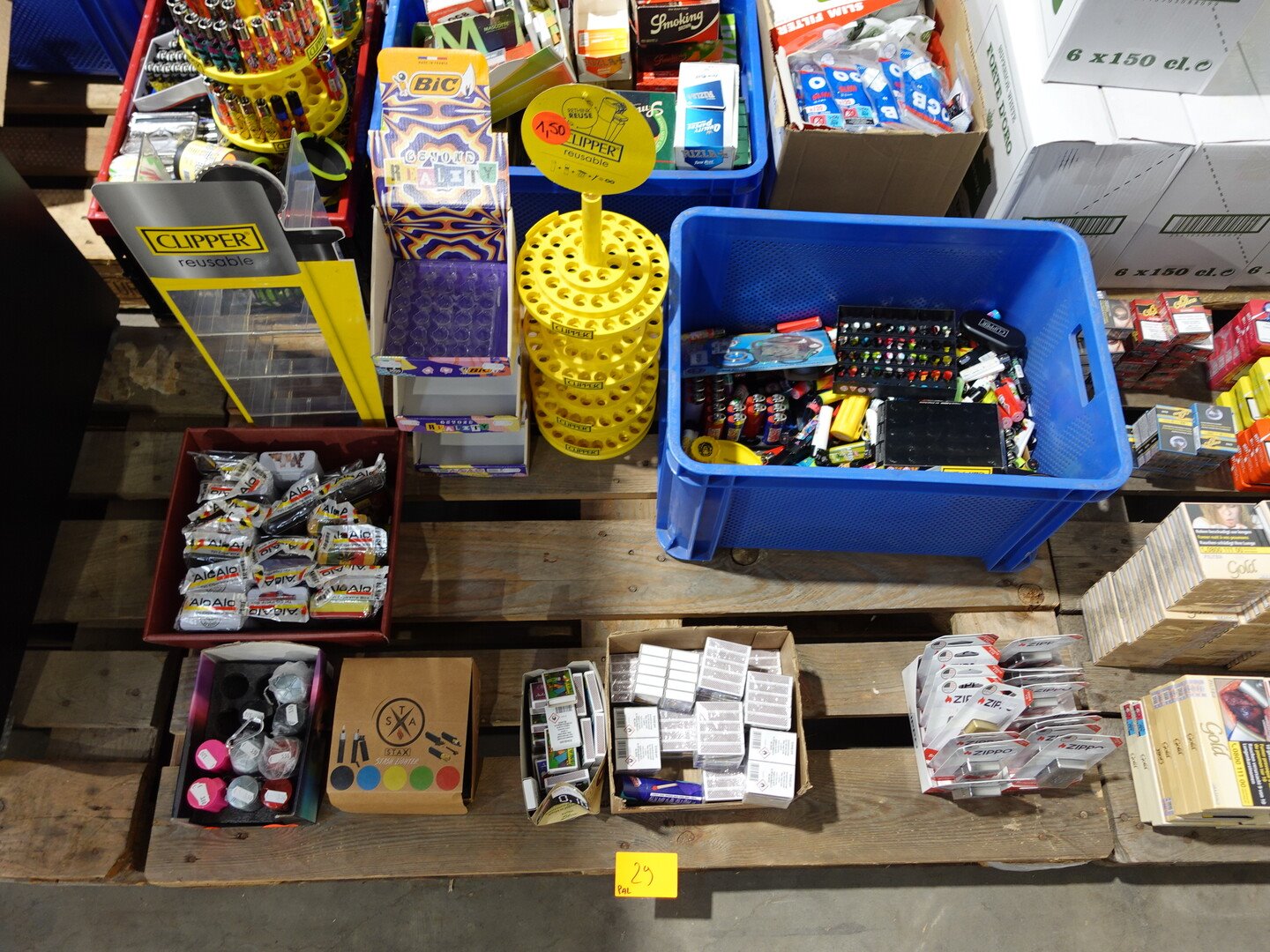 Oa: zippo's , stekjes, aanstekers, ... samen met presentatie houders <br /> <br /> Opgelet: Enkel B2B verkoop aan bedrijven met "vergunning Handelaar Alcohol en Tabak"<br /> <br /> Locatie: B13