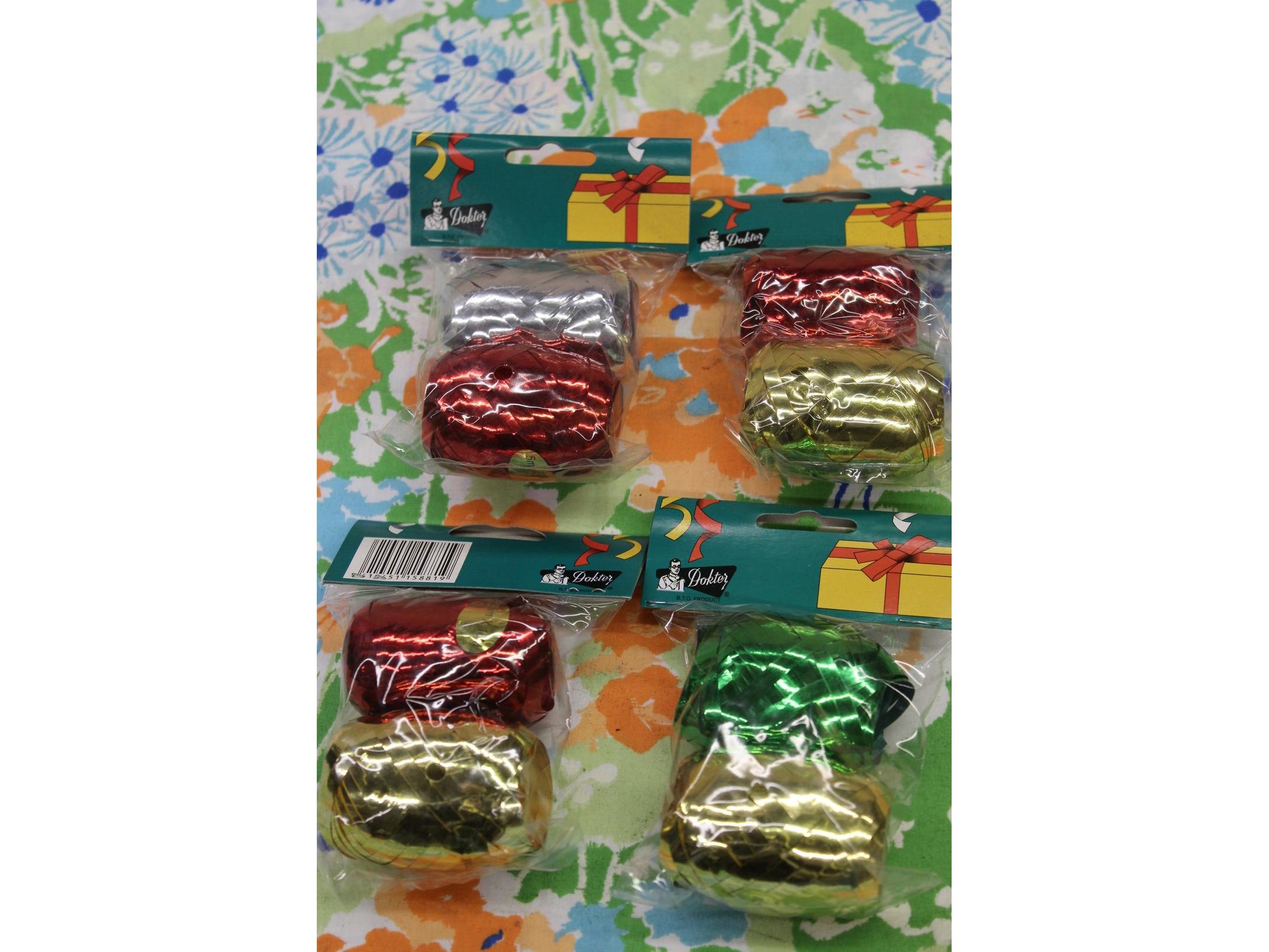 Inpaklinten diverse kleuren 4 kartons van 24 x 2 rolletjes<br /> Staat: ongebruikt
