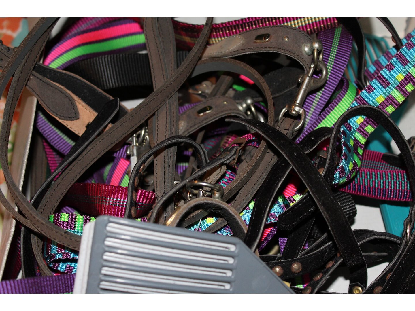 Lot hals +leibandjes in doojes en lot losse + een paar eet of drinkbakken voo de hond<br /> Staat: ongebruikt