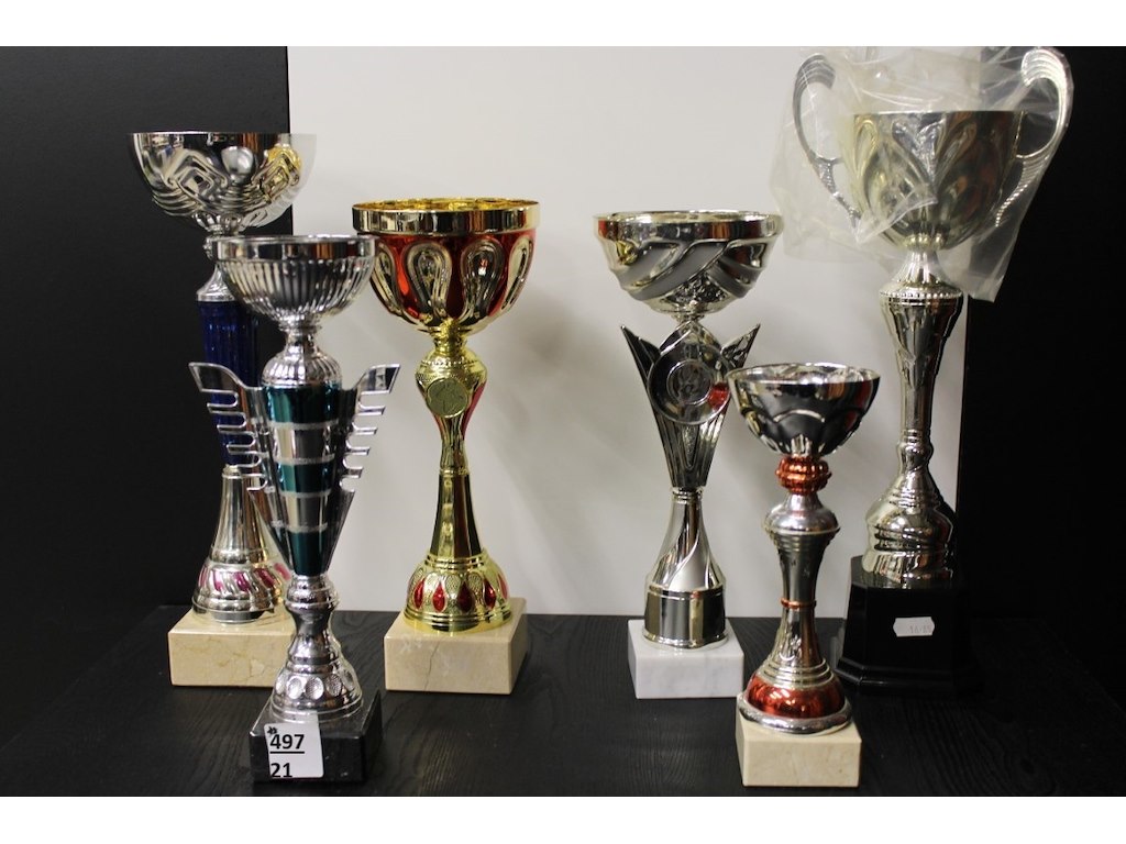 6x mix trofees hoogte 1x36cm +1x31cm + 1x30cm + 1x 30cm+ 1x23cm + 1x40cm<br /> Staat: ongebruikt