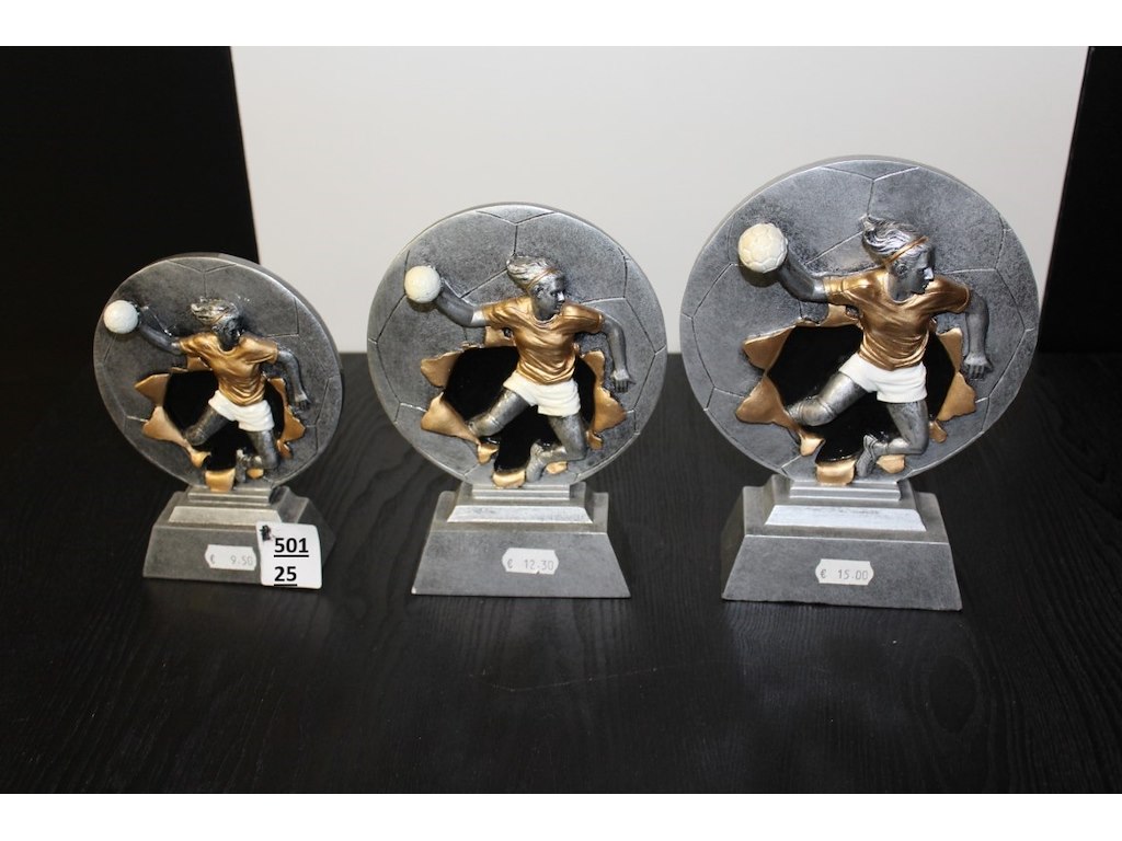 3x handball trofee hoogte 1x16cm -1x18cm -1x20cm<br /> Staat: ongebruikt