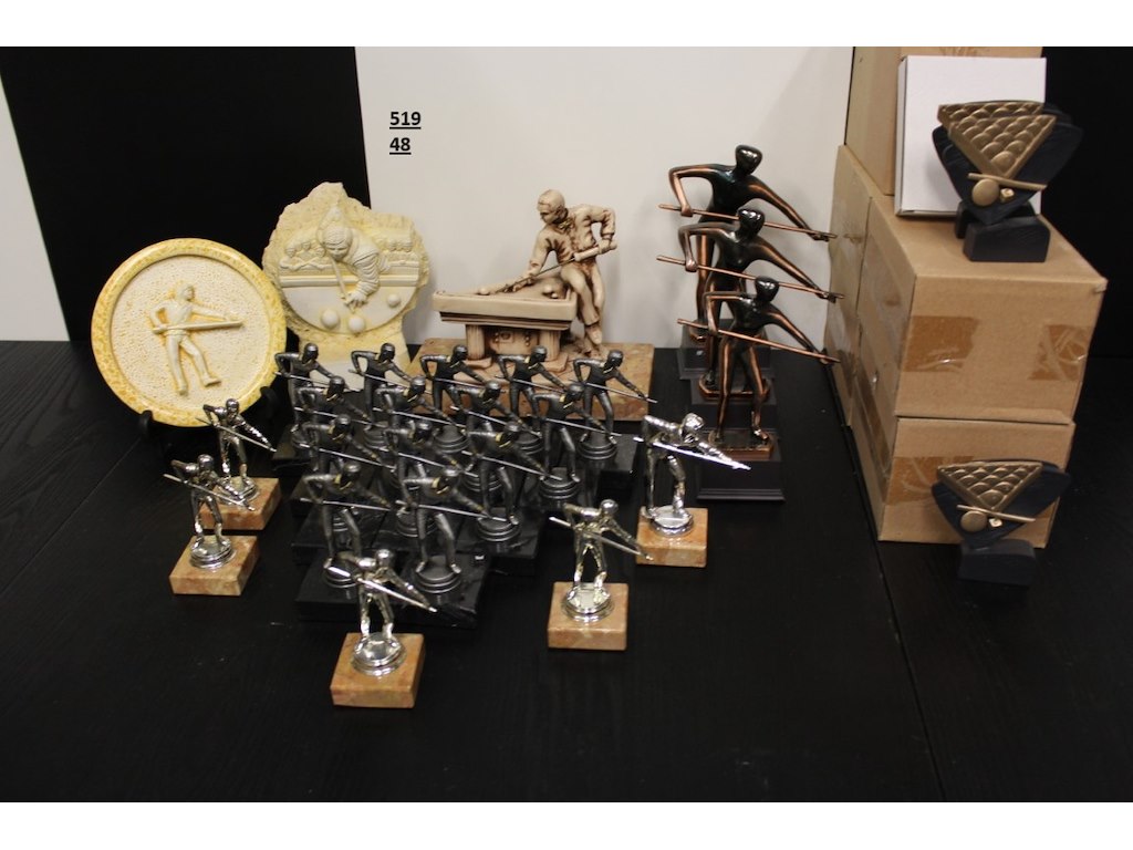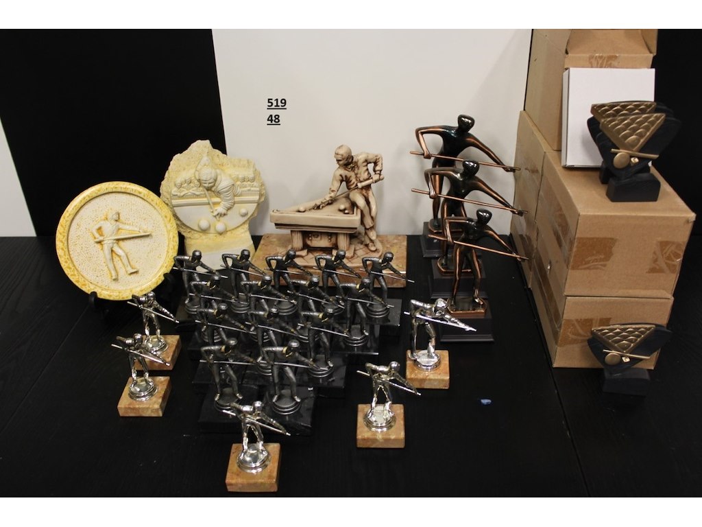 58 x biljart trofee+30 in doosje<br /> Staat: ongebruikt