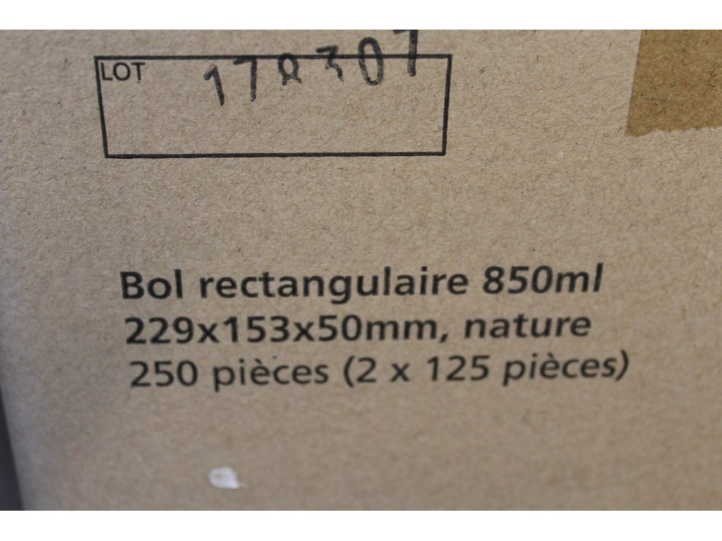 Verpakking karton schaaltje 250 stuks afm 229 x 153 x50 mm<br /> Staat: ongebruikt