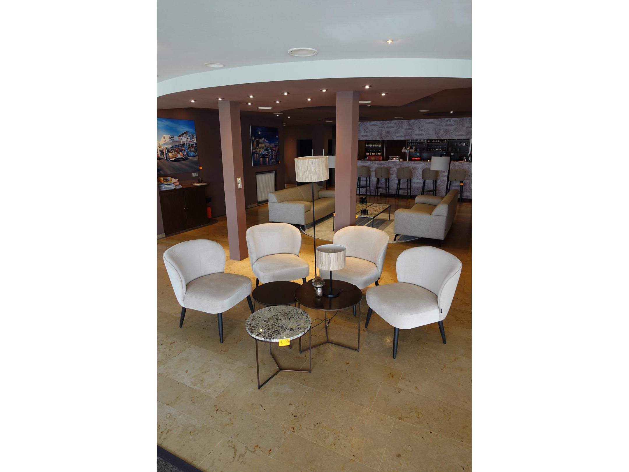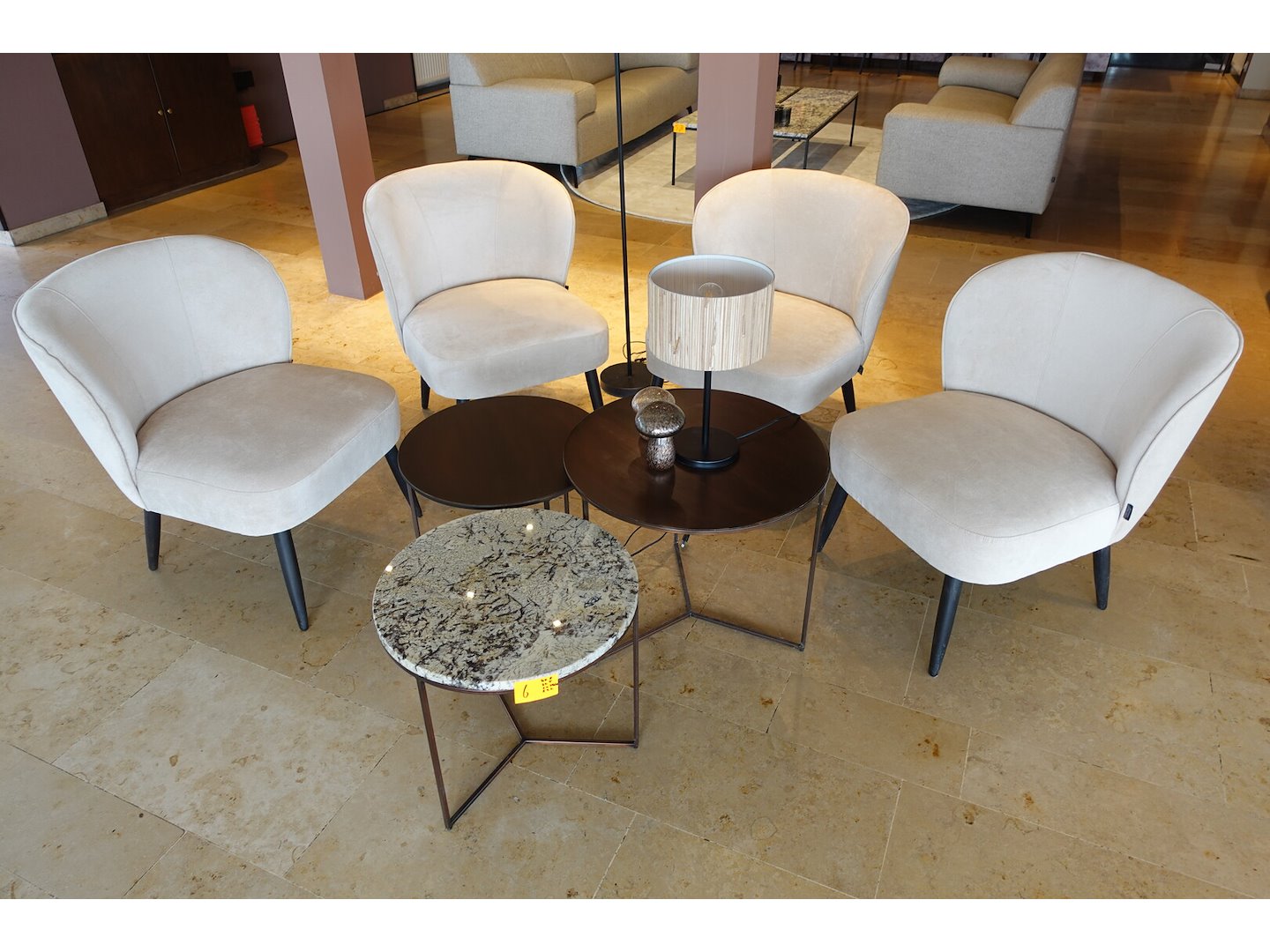 4x Fauteuil, 3 x bijzettafel,2x lamp <br /> Locatie: Inkom