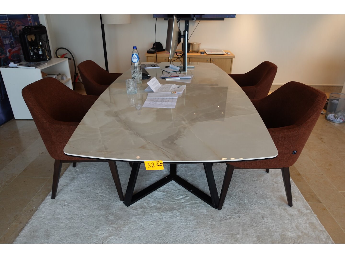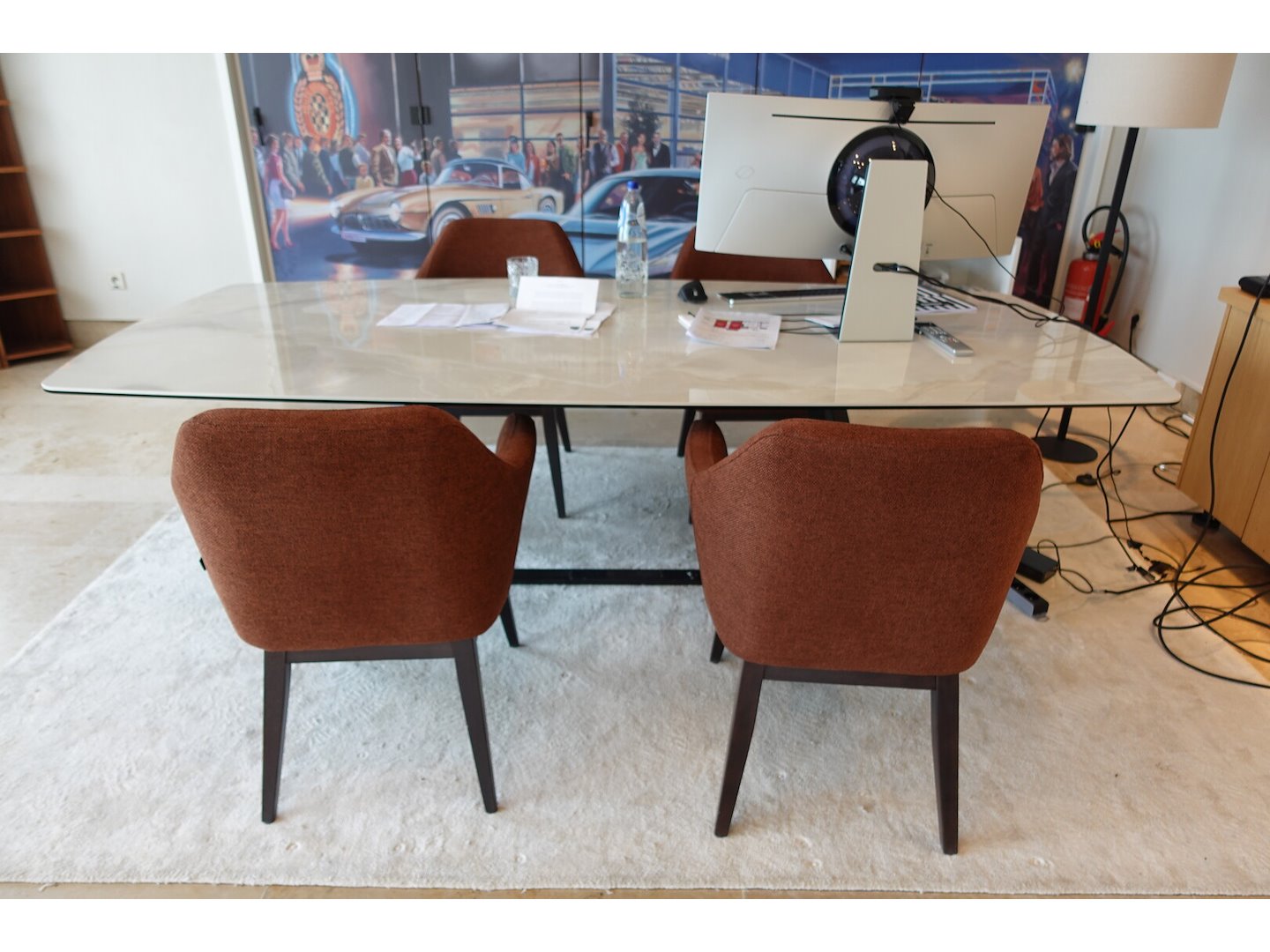 Design eettafel 2400x1100x740, 4x stoel & lamp <br /> Locatie: Bureau naast de bar links