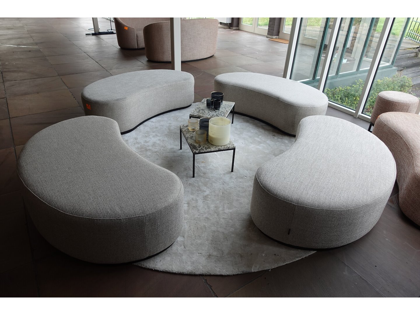 4x zitbank,2x bijzettafel & tapijt <br /> Locatie: Grote zaal Achteraan