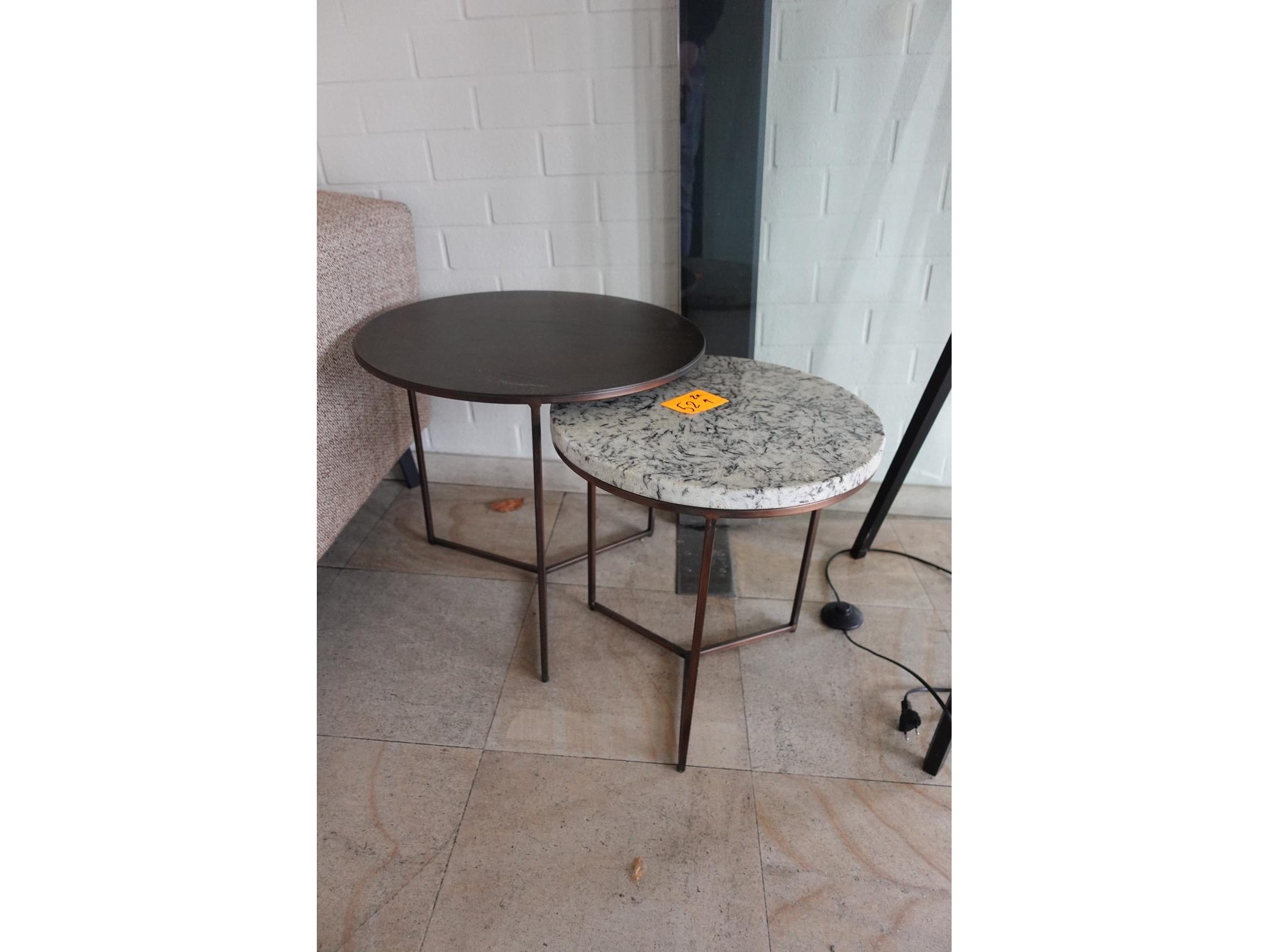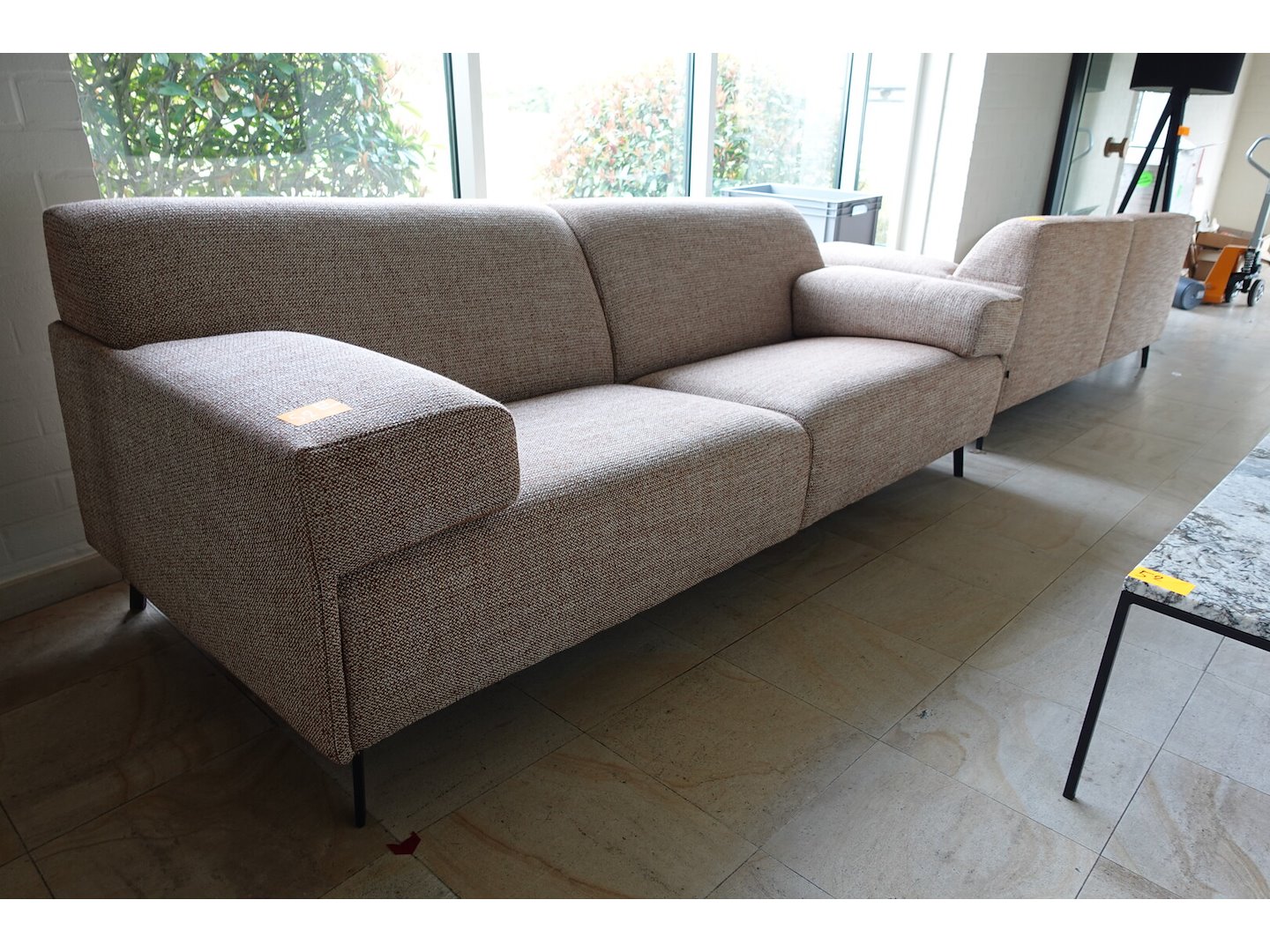 2x zitbank in stof 2300x900 2x bijzettafel 1x tafel , lamp <br /> Locatie: Ingang feestzaal