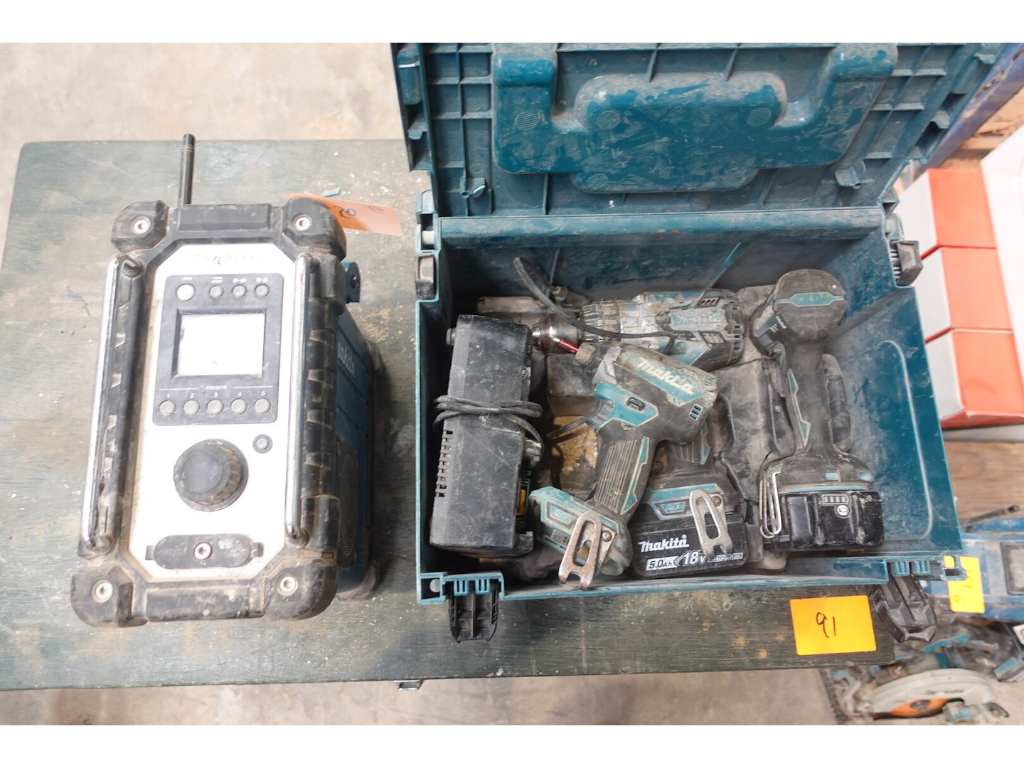 Radio, 3x vijsmachine , 1x lader, 3x accu <br /> locatie: Loods