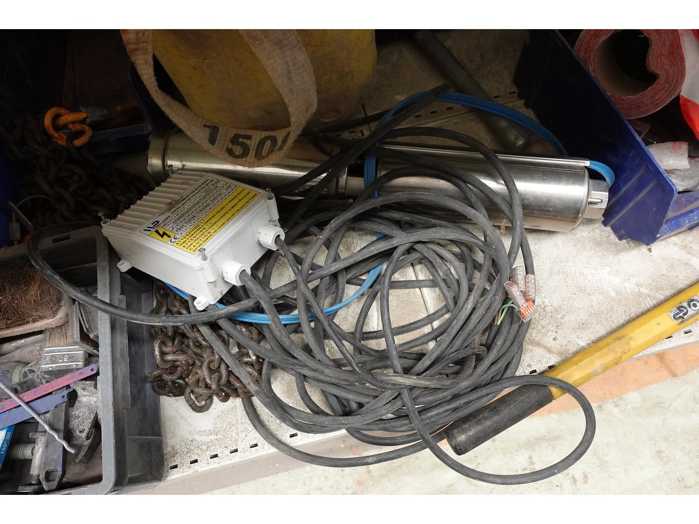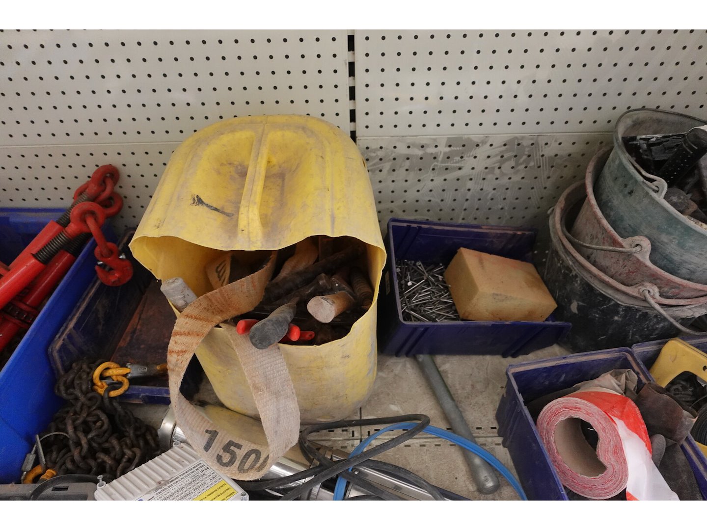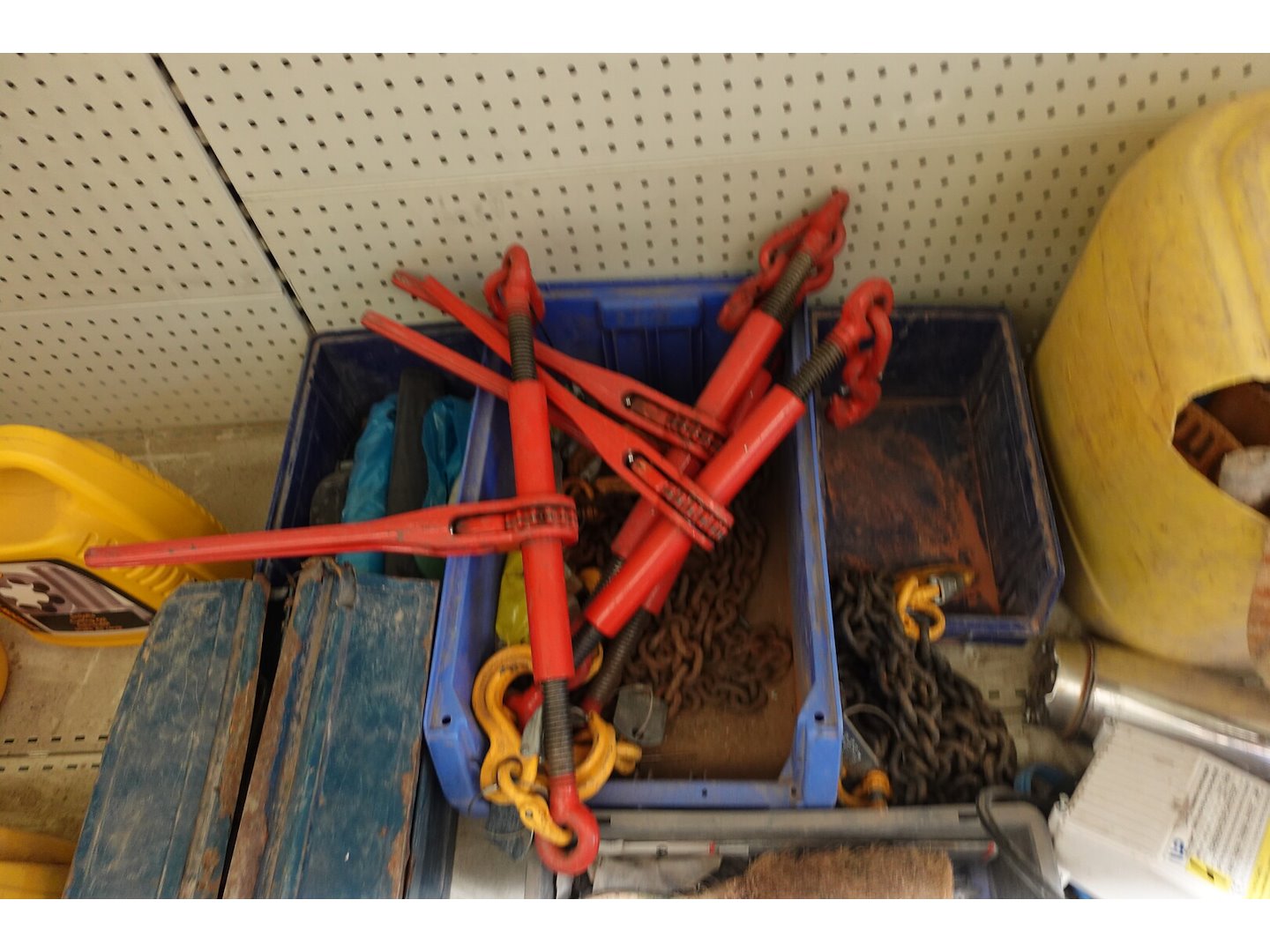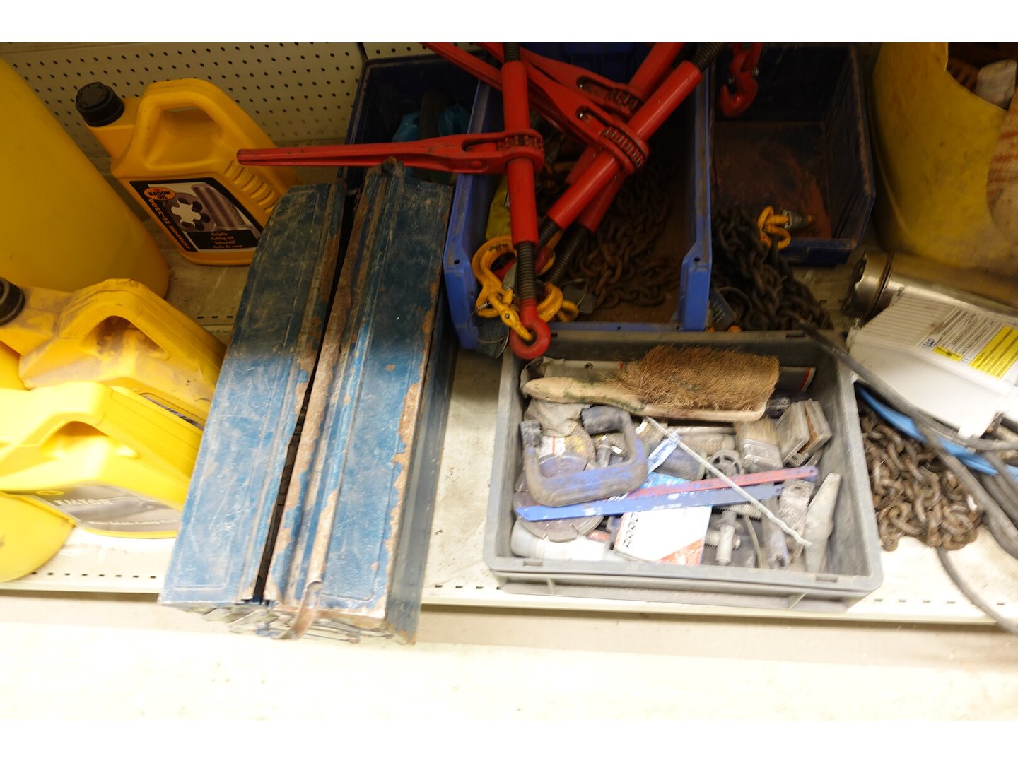 4x kettingspanner, Materiaalkoffer, Diverse handgereedschappen, Pomp , ...<br /> locatie: Magazijn / Kamer 1