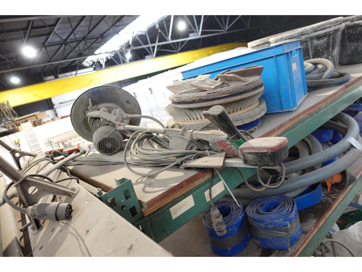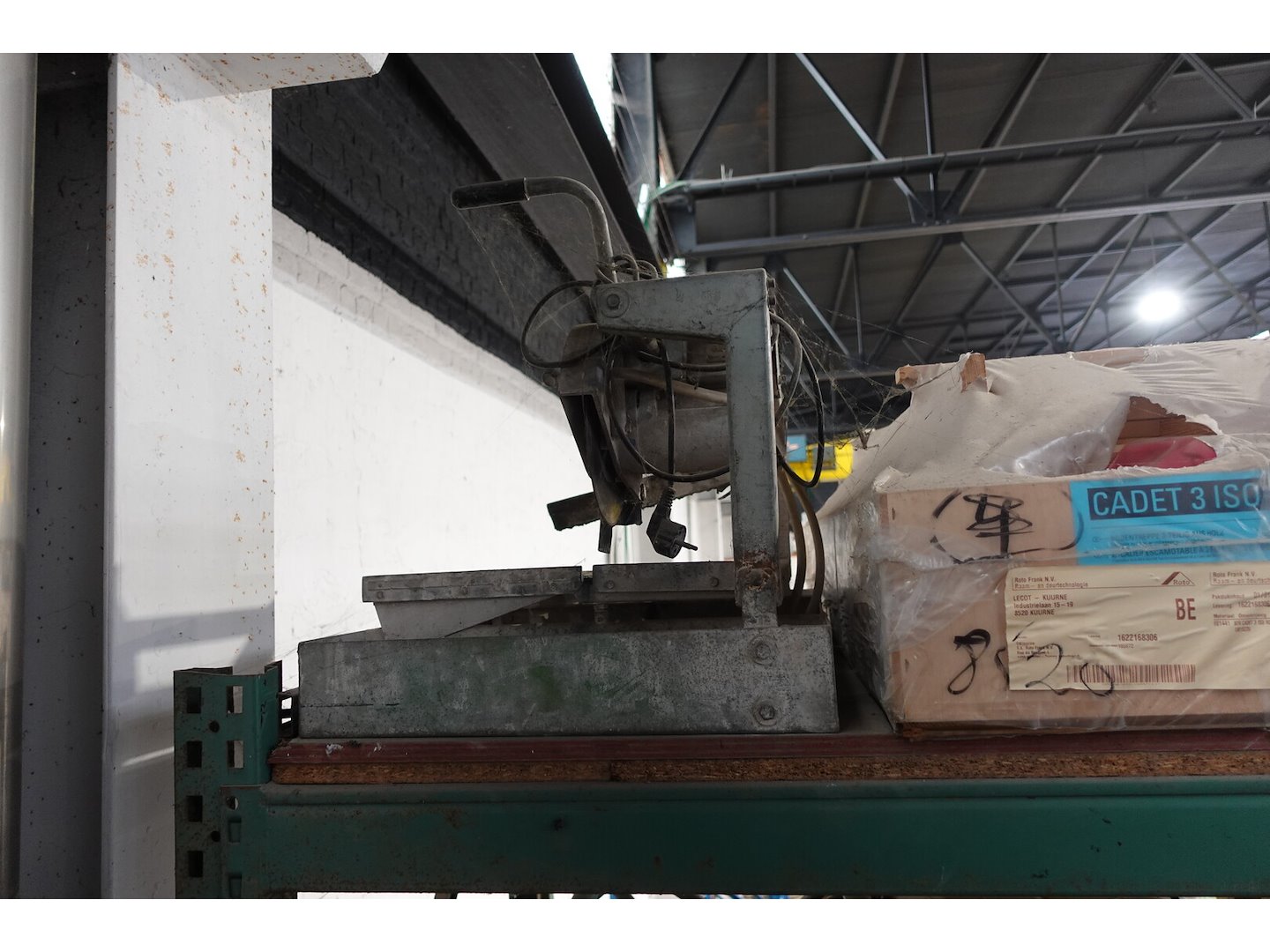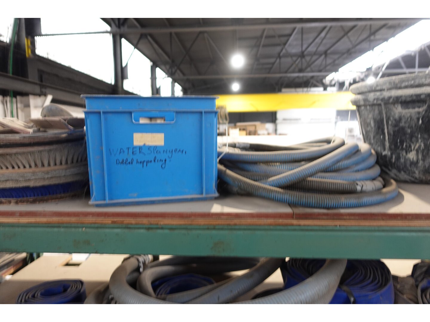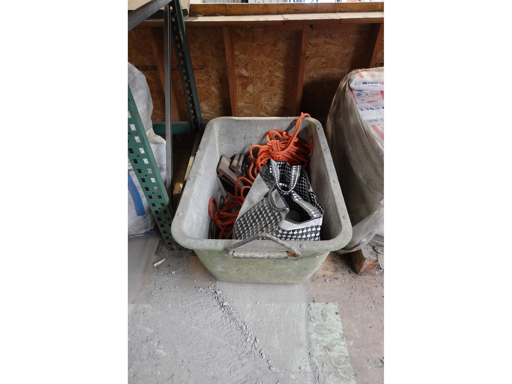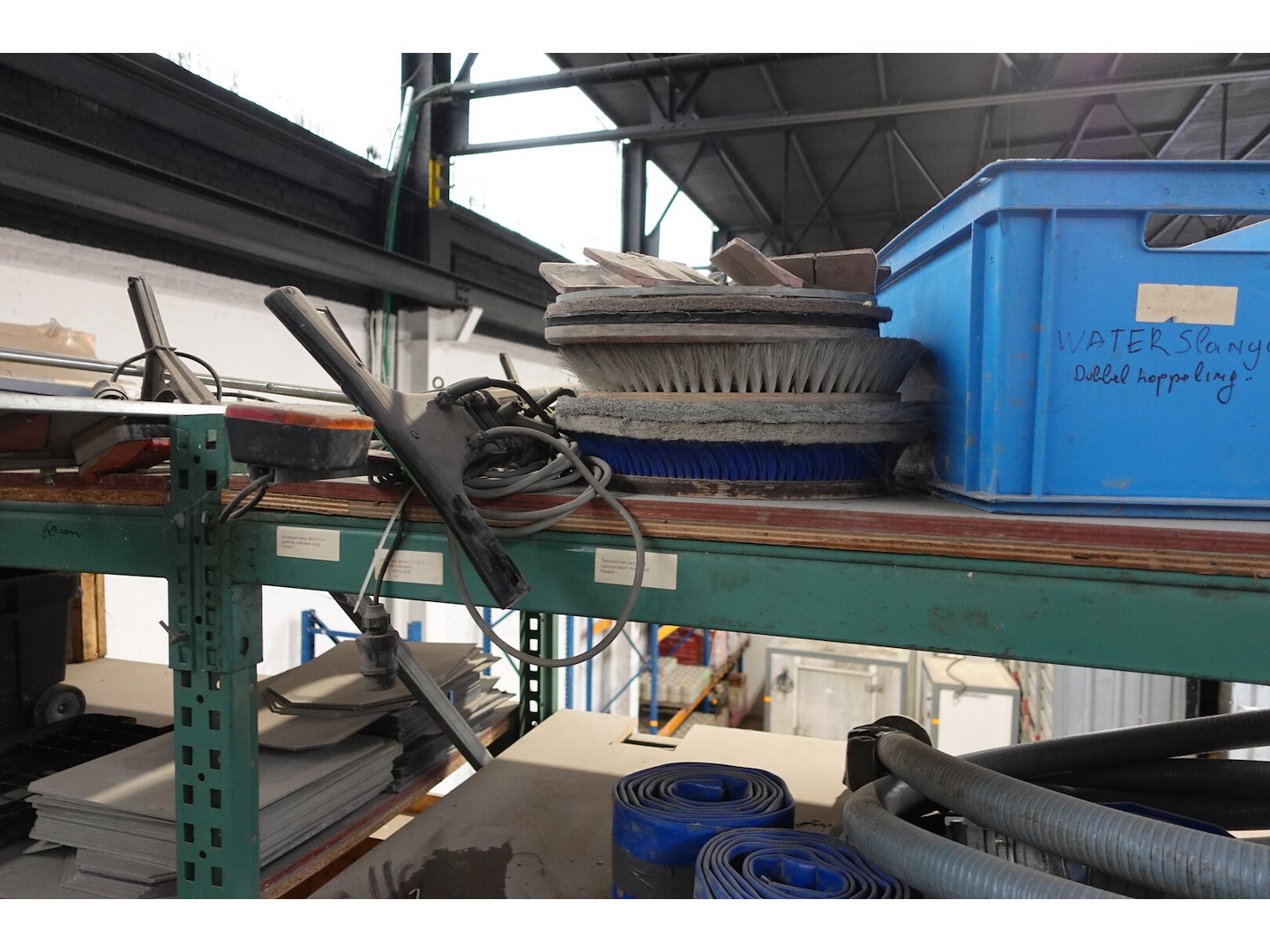 3x kruiwagen haak, slangen, 5x werflamp, steenzaag, koord, kuismachine, kuipen, ...<br /> locatie: Verdiep