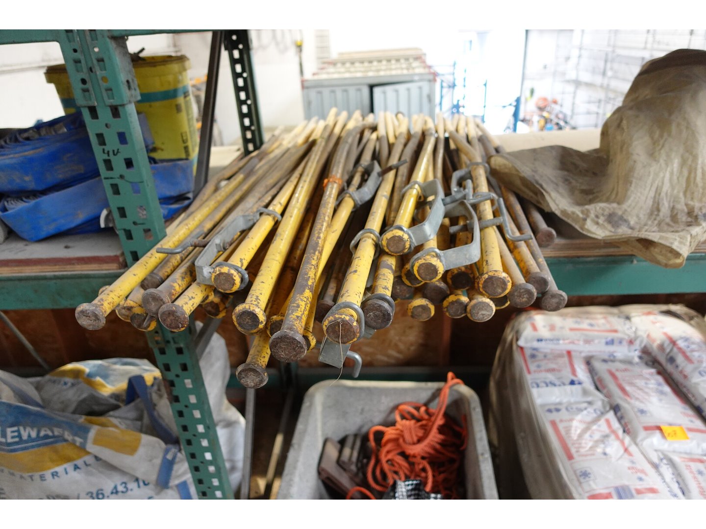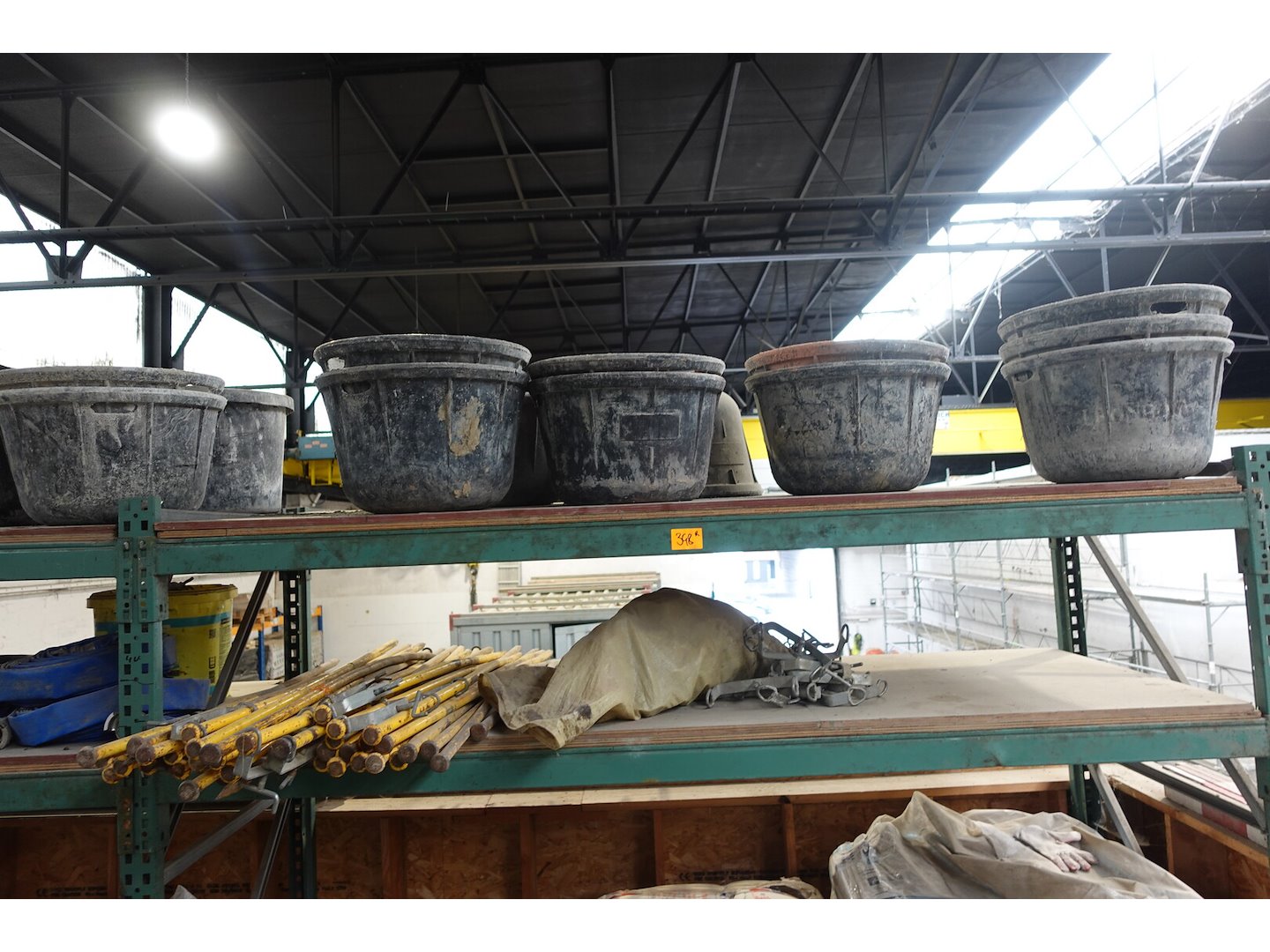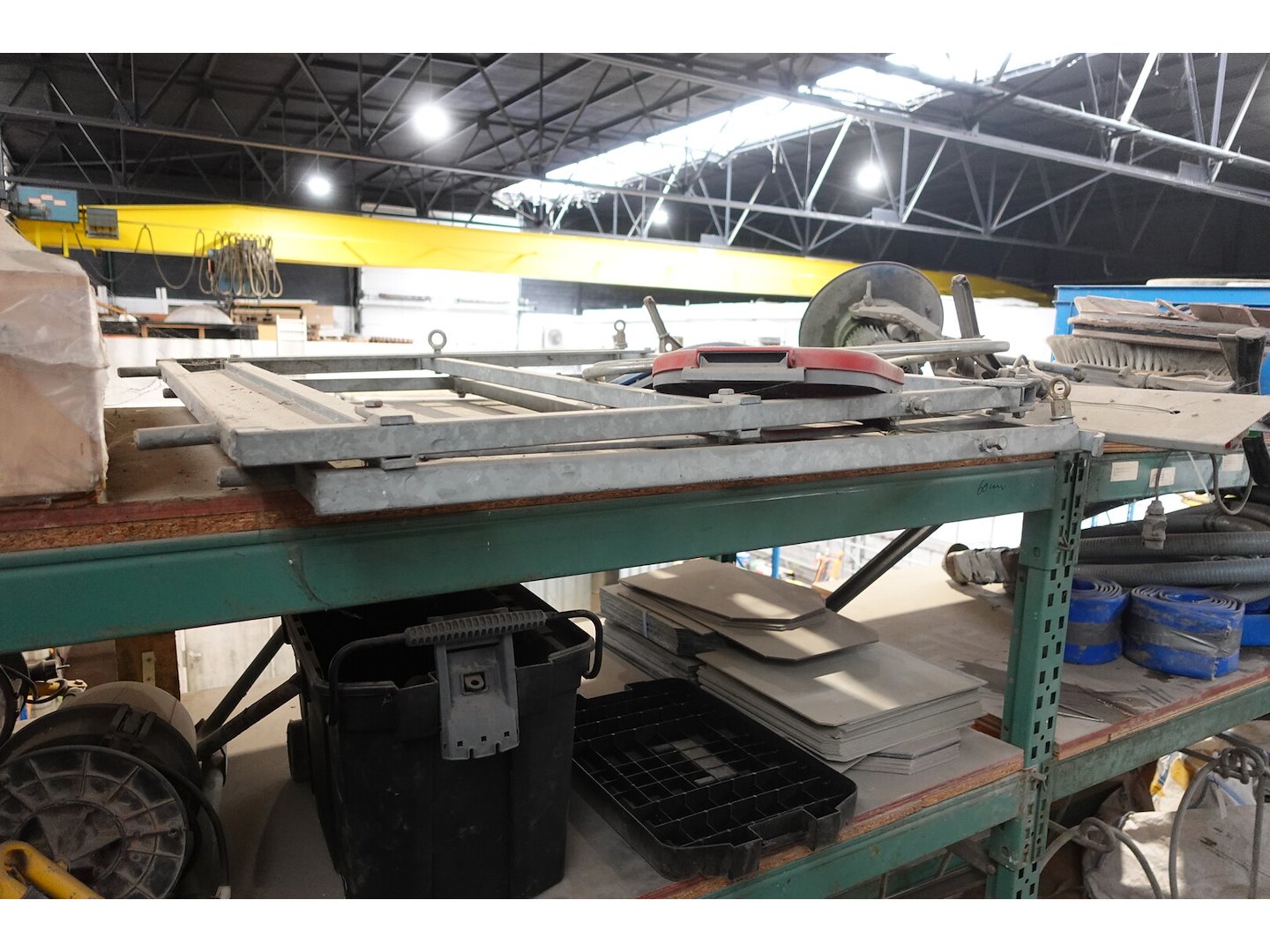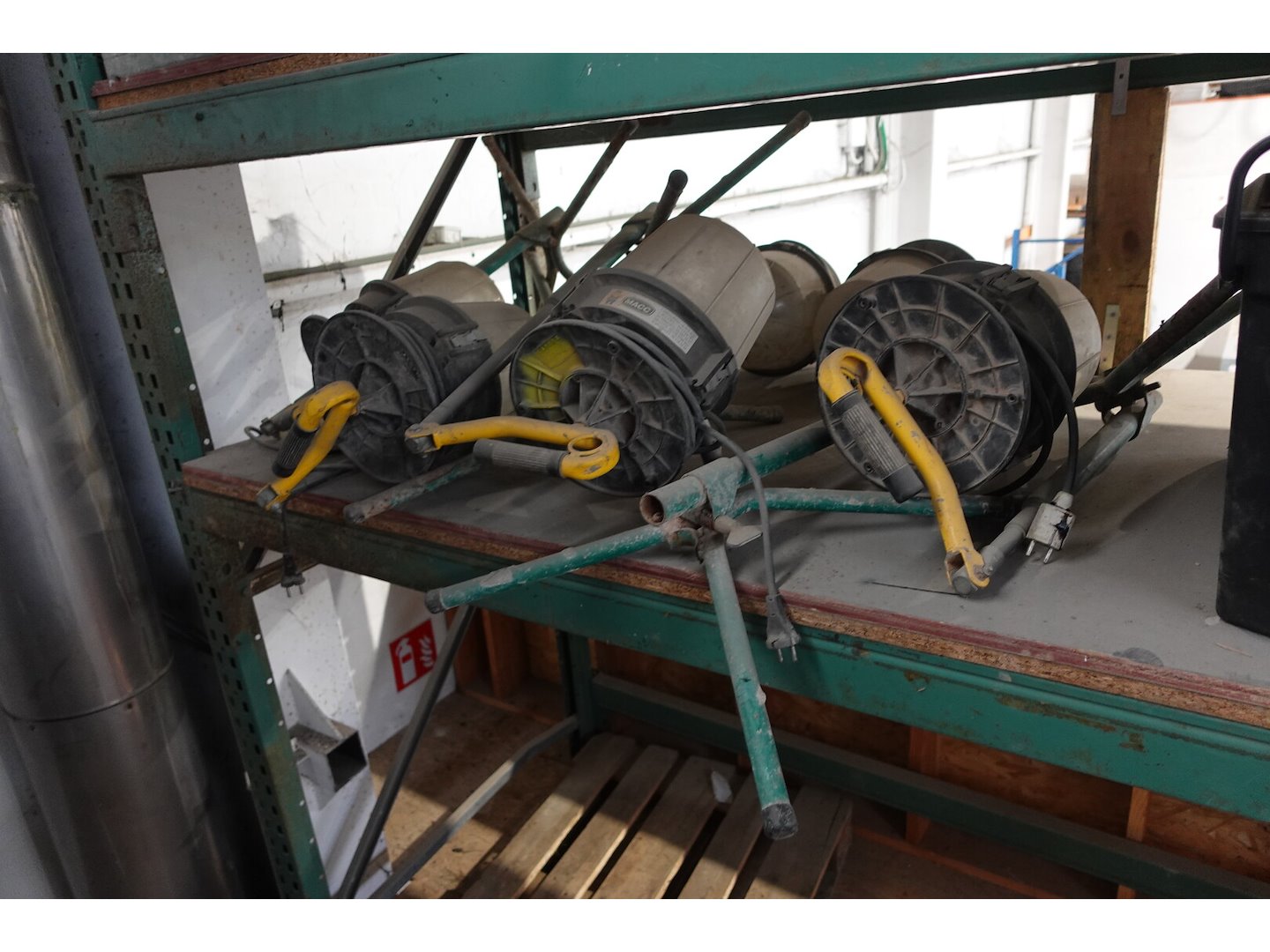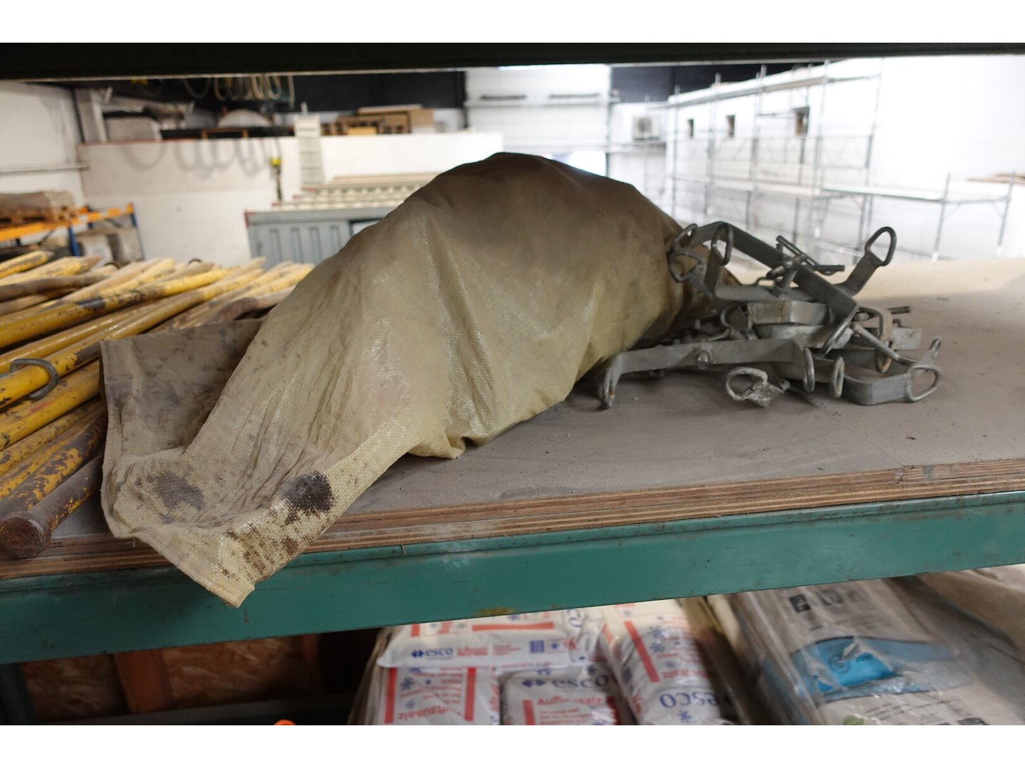 3x kruiwagen haak, slangen, 5x werflamp, steenzaag, koord, kuismachine, kuipen, ...<br /> locatie: Verdiep