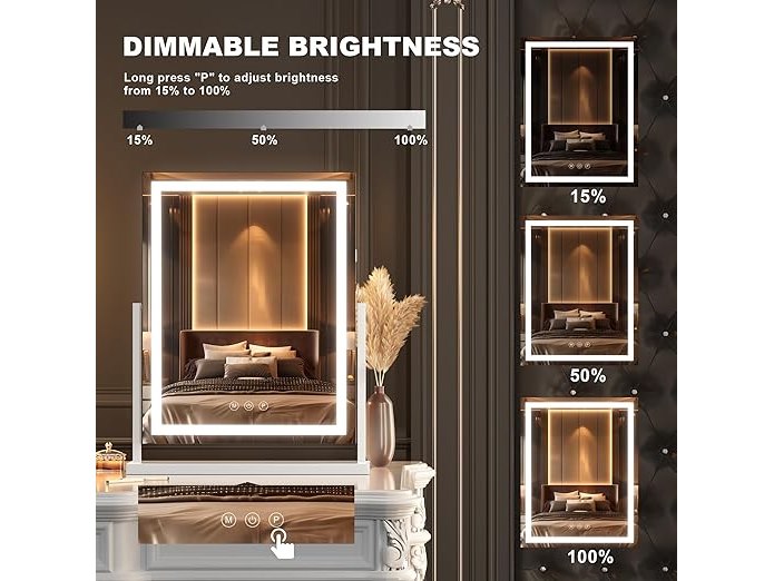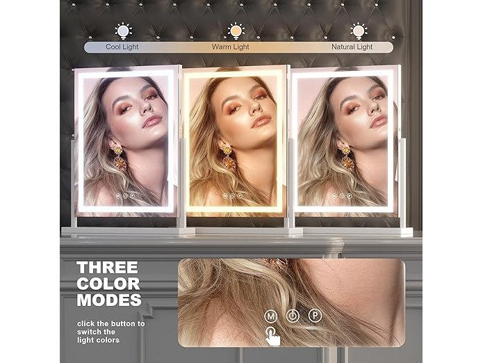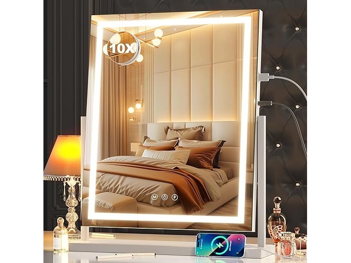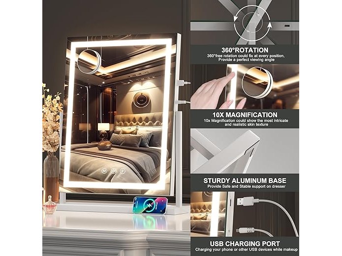 Ongebruikt, getest en werkend, volledig, ok, Hasipu make-upspiegel met verlichting, verlichte make-upspiegel met 10-voudige vergroting, verstelbaar, 3 modi, touch-displaybediening, led-make-upspiegel, 38,1 x 50,8 cm, B0D41L71TZ