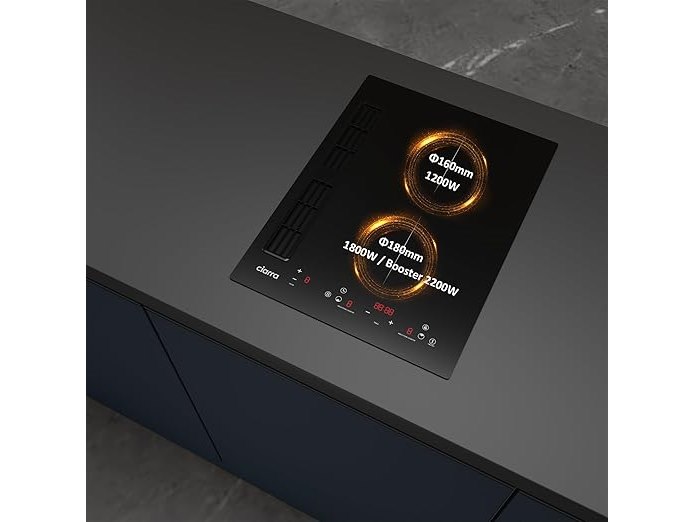Ongebruikt, getest en werkend, volledig, ok, CIARRA ONE CBBEH392B Inductiekookplaat met afzuigsysteem (39 cm) PowerBoost Sneller koken Touch Control Inductiekookplaat CombiZone Combinatie met 2 kookplaten Timer Stop & Go [Energieklasse A], B0D4TWVK2Q