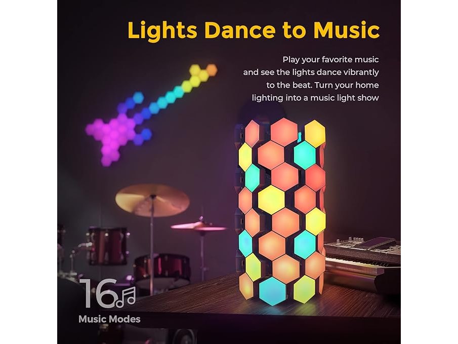 Ongeopend, Syro-Bricks 3D Hexagon Lights, Smart App Control, RGB Hexagon LED Lights voor Muur of Bureau met Muzieksynchronisatie voor Gaming Room Streaming Decoratie (72 stuks), B0BNB91Q26