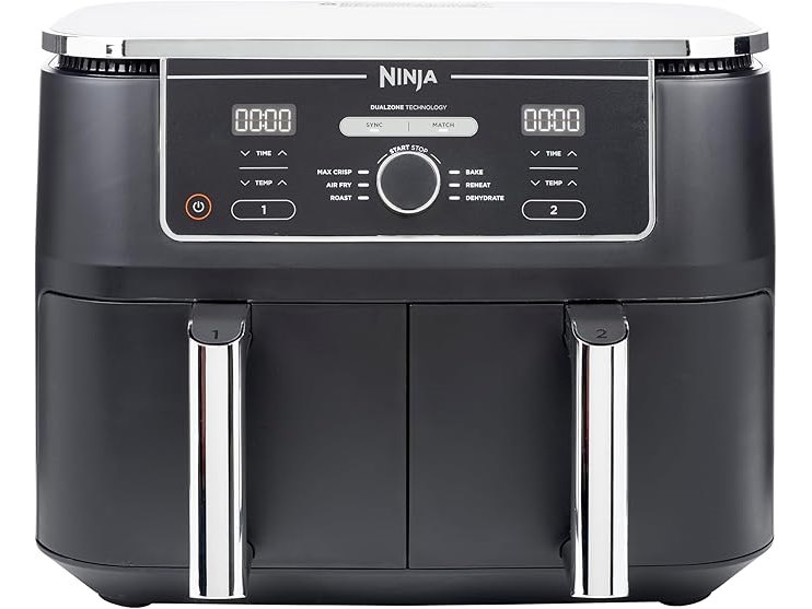 Minieme gebruikssporen, getest en werkend, ok, originele verpakking ontbreekt, Ninja Foodi MAX Dual Zone Digitale Airfryer, 2 Laden, 9,5L, 6-in-1, Olievrij, Airfryen, Max Crisp, Braden, Bakken, Drogen, 8 Porties, Vaatwasmachinebestendige Manden Met Anti-aanbaklaag, Zwart AF400EU, B09DGBJN2C