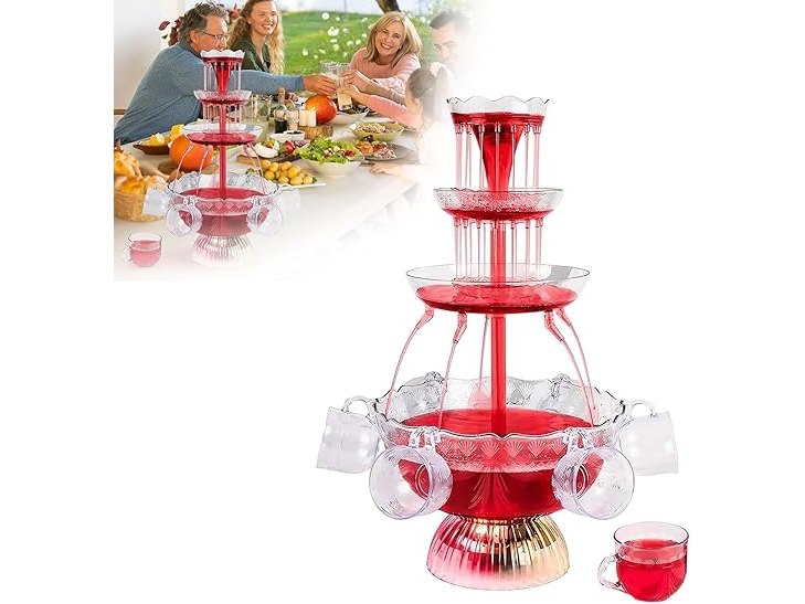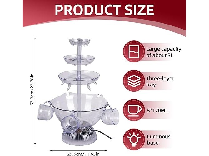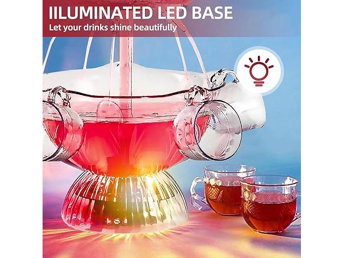 Ongebruikt, getest en werkend (bevat testsporen), volledig, ok, Twsoul 3 liter transparante partyfontein met 5 herbruikbare bekers, acryl, led-verlichte sokkel, voor pubs, thuisfeest, B0F1FT2MTG