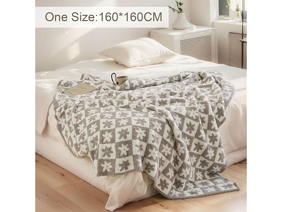 Ongeopend, jianyana Deken voor de bank, knuffeldeken, warm, ademend, niet klevend, gebreide deken, bankovertrek, deken, wasbaar, 160 x 160 cm, wollige, slijtvaste woondeken voor bank (as), B0D72K981J