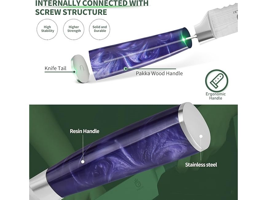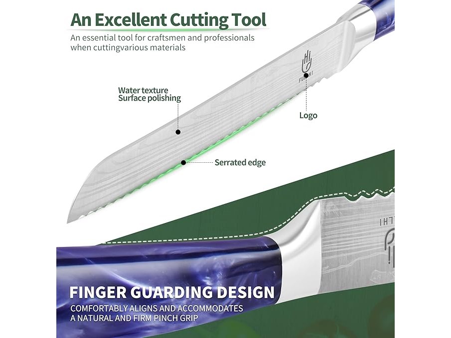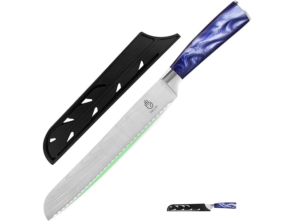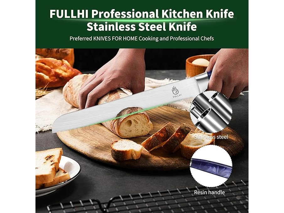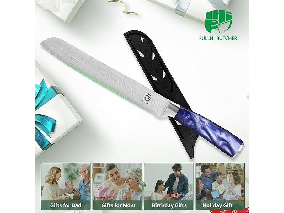 Ongeopend, ok, FULLHI Broodmes,Multi Colour 8 inch Japans Mes, Taartmes Roestvrij Staal Keukenmes met Schedebescherming (Paars Hars), B0D7ZSZQR8