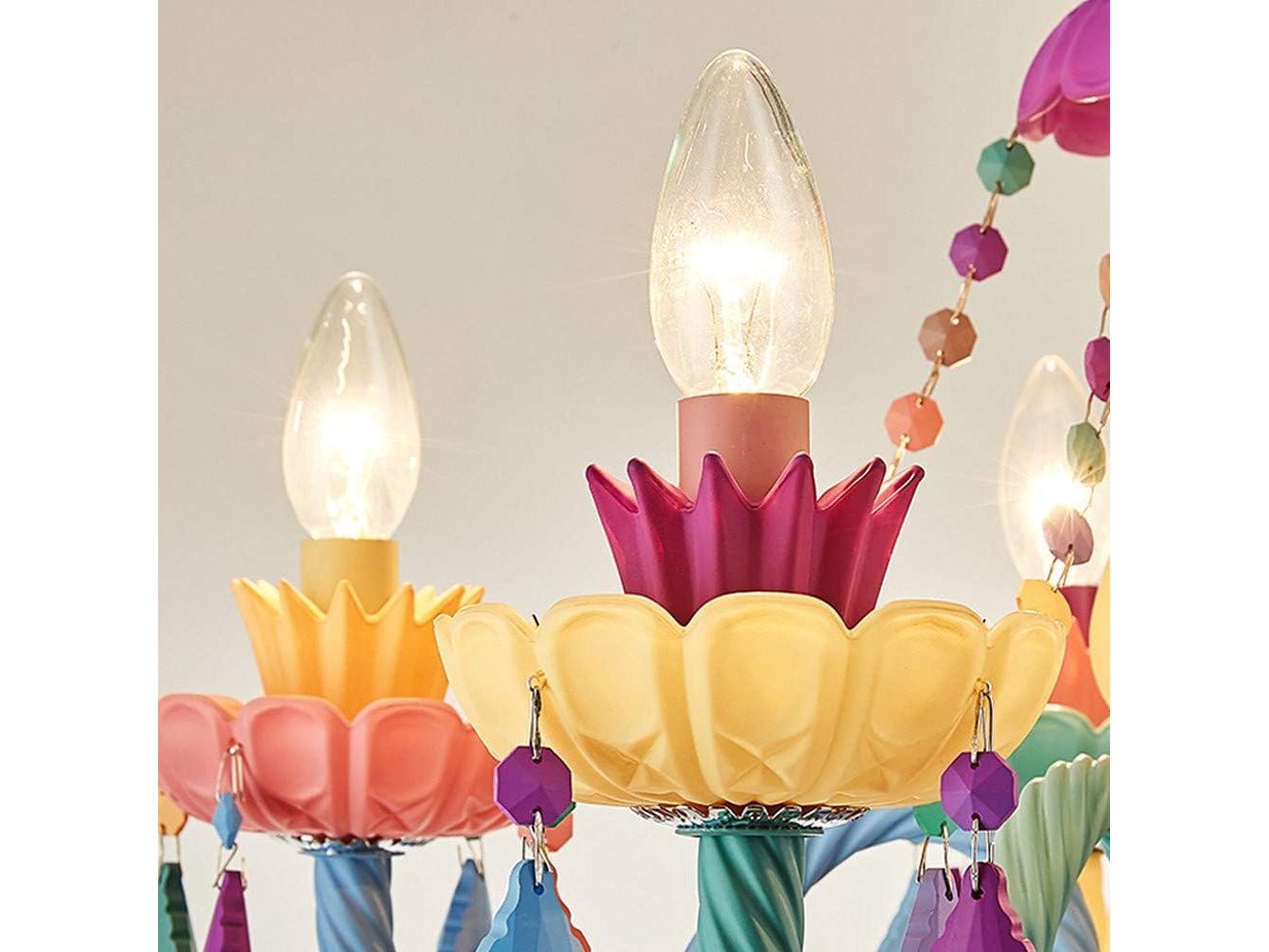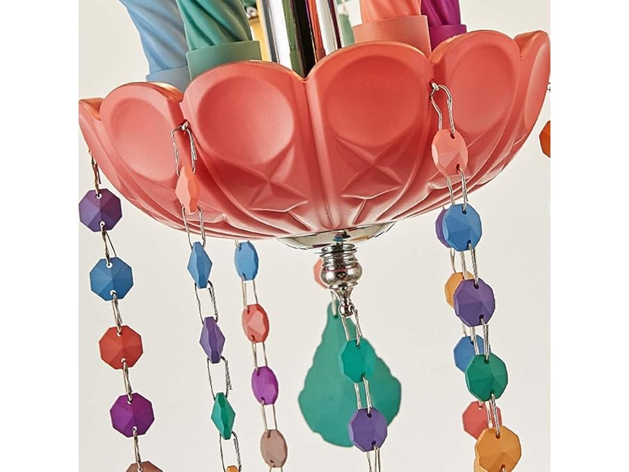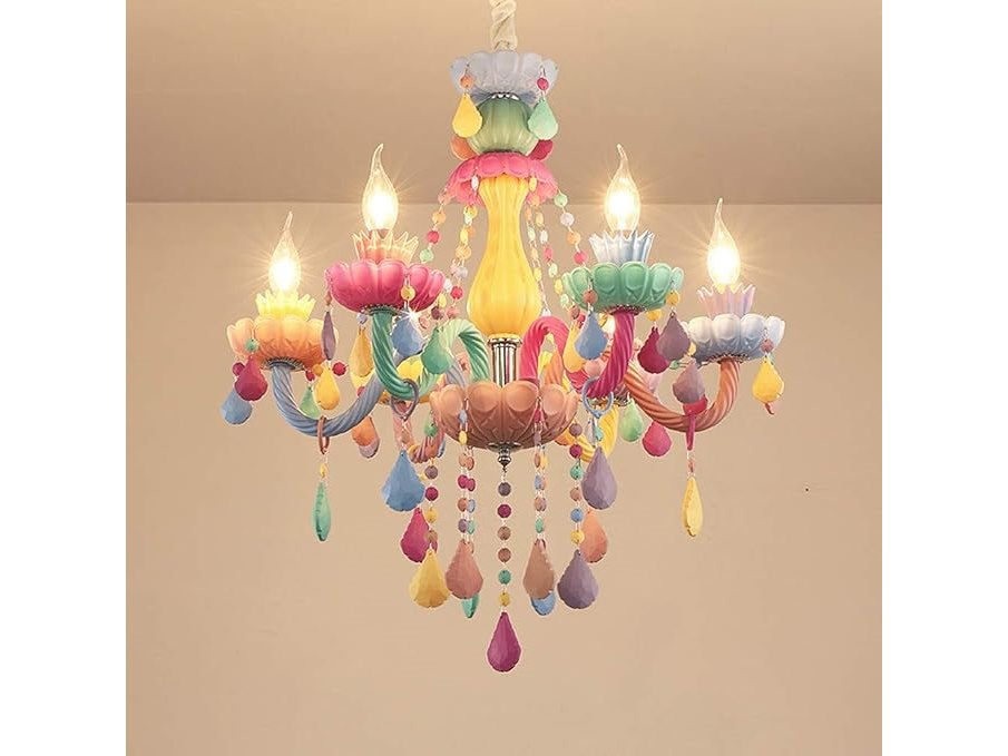 Ongebruikt, getest en werkend, volledig, ok, ZenithBeam Kleurrijke Kristallen Hangende Kroonluchter Lichtarmatuur 6 Lichten Europese Meisjeskamer Hanglamp Plafondverlichting Kaarsenkandelaar voor Meisjes Slaapkamer Woonkamer Eetkamer Café, B0CGZ4W53F
