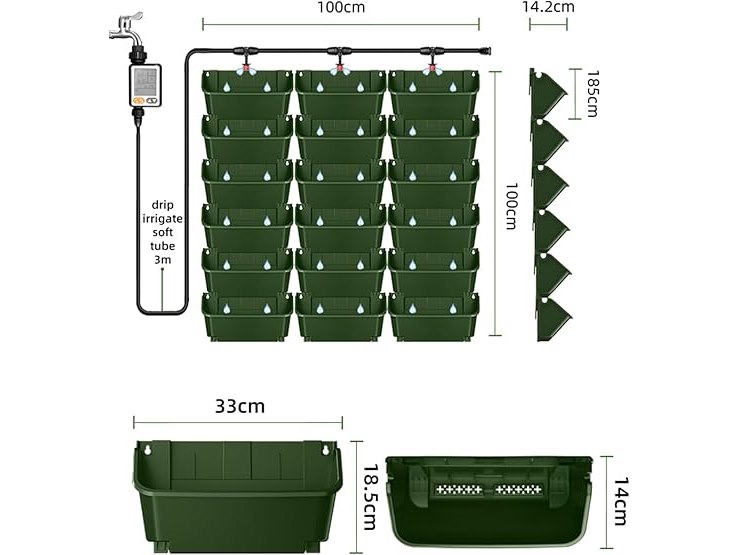 Ongeopend, in seal, licht beschadigde verpakking, CEIEVER Wandplantenbak met automatische irrigatie, 18 stuks, hangende verticale wandplant met automatisch irrigatiesysteem, hangende bloempotten voor binnenplaats, tuin, B0CPJ2NXC3