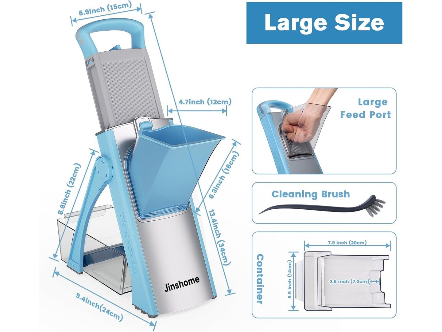 Ongeopend, INSHOME Veilige Mandoline Snijder, Groentesnijder, Voedsel Chopper Verstelbare Dikte Aardappel Snijder Frieten Cutter, Wortel Rasp Ui Snijder en Chopper, blauw , B0CK161CGK