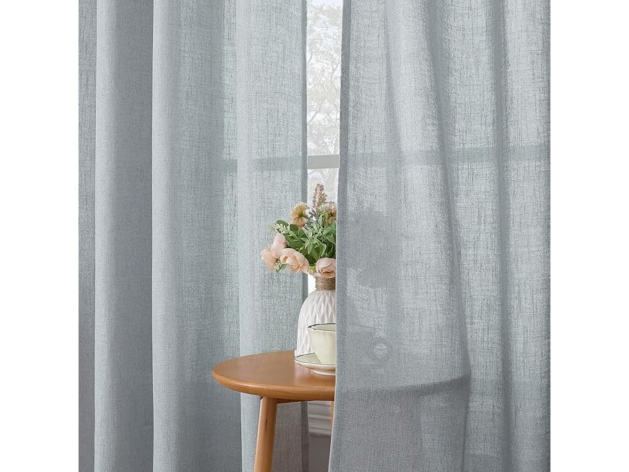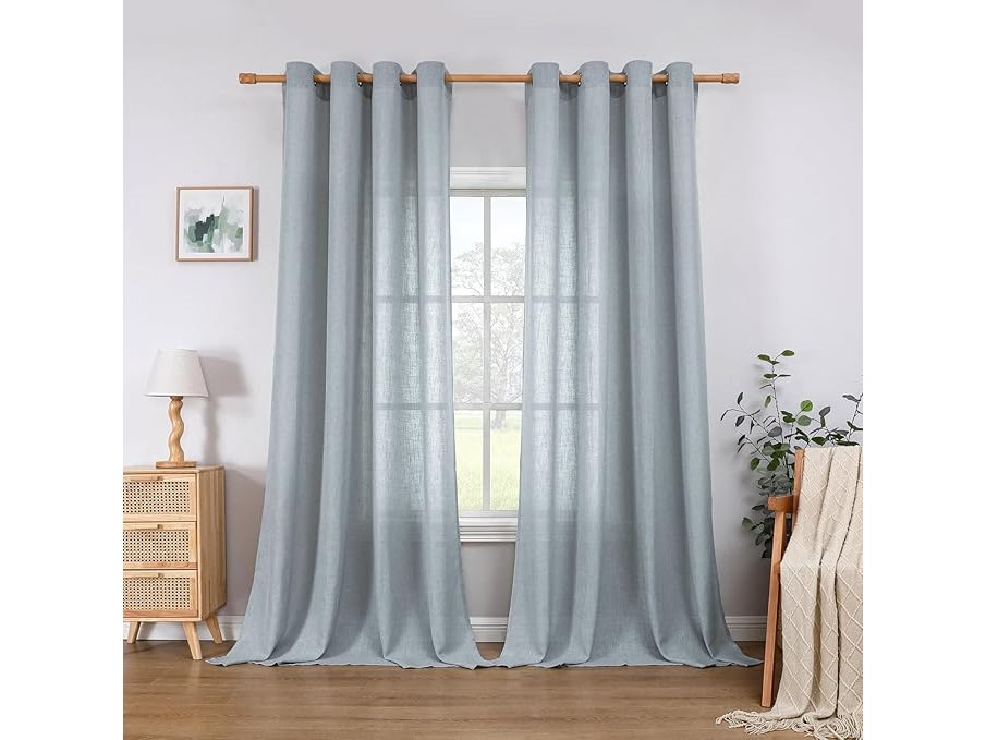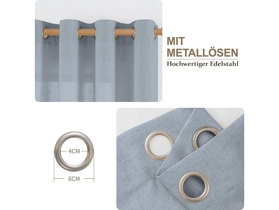 Ongeopend, ok, CUCRAF Linnen gordijnen met oogjes half transparant linnen gordijn voile raamsjaal Dekosjaal voor slaapkamer kinderkamer woonkamer, H 260 x B 140cm, set van 2, grijs blauw,B0CLRPGHZR