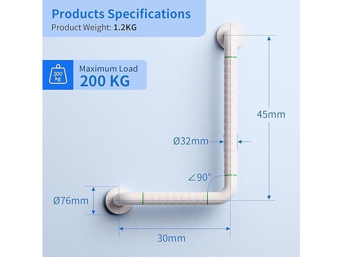 Ongeopend, ok, OTOmira douchegreep, roestvrij staal, 45 x 30 cm, antislip, badgreep, wandmontage, handgrepen voor toilet, trapleuning, badkamer, B0DQV5SQG1