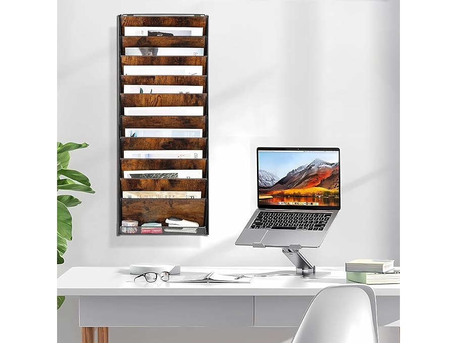 Ongeopend, in seal, Solinxe Hangende muurvijlhouder, bureau post papier documentenmap organizer met onderste lade tijdschriftenrek (zwart/antiek, 10 lagen), B0D3PP5YK7 - YJ-0447