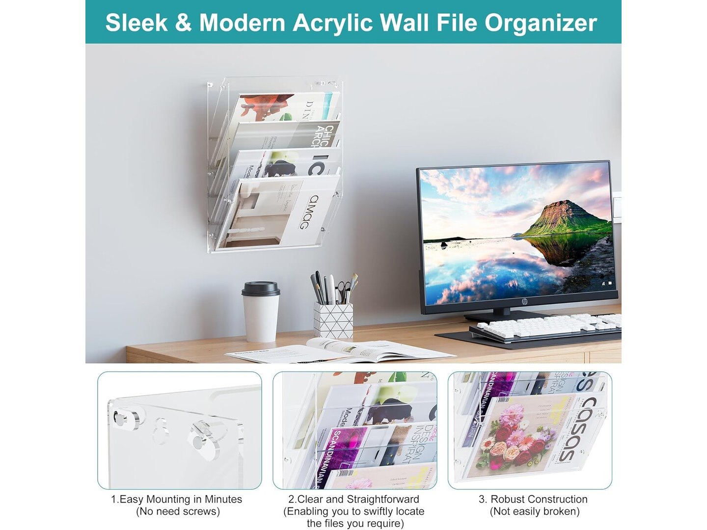 Ongeopend, in seal, Solinxe Hangende tijdschriftenstandaard, wand met 5 vakken, transparant, wandopbergvakken, A4, documentenhouder, krantenhouder, kantoor, school, opbergruimte, organizer, B0FH1XXS6N
