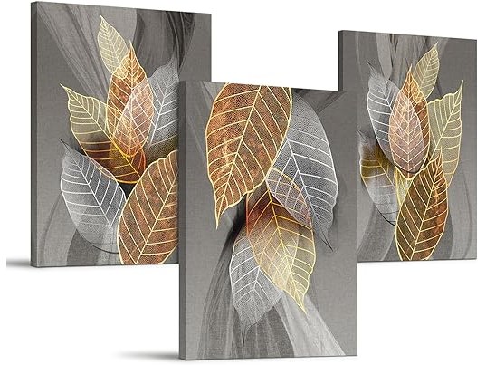 Ongebruikt, volledig, ok, Hyidecorart Canvas Schilderij Set Woonkamer, Moderne Schilderijen Gouden Planten Blad, 3 stks, B0BG88F27Y
