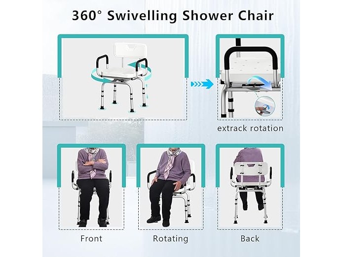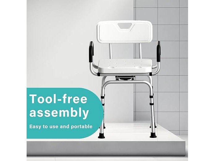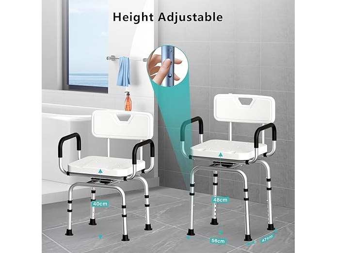 Ongebruikt, volledig, ok, TODO Douchekruk, 360 graden draaibaar, in hoogte verstelbaar, met rubberen antislipvoetjes voor een veilige grip, badkruk, douche-hulp, douchestoel, belastbaar tot 120 kg, B0DJR5N1PZ