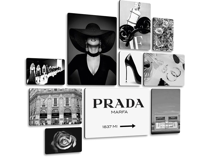 Ongebruikt, ok, Giallobus - Set van 10 schilderijen met meerdere panelen - 5 - Fashion Prada Marfa - MDF-hout - | 2 x 42x29,7cm | 4 x 29,7x21cm | 4 x 21x14,85cm | - Klaar om op te hangen - Schilderijen,B0CB4PQ7PT
