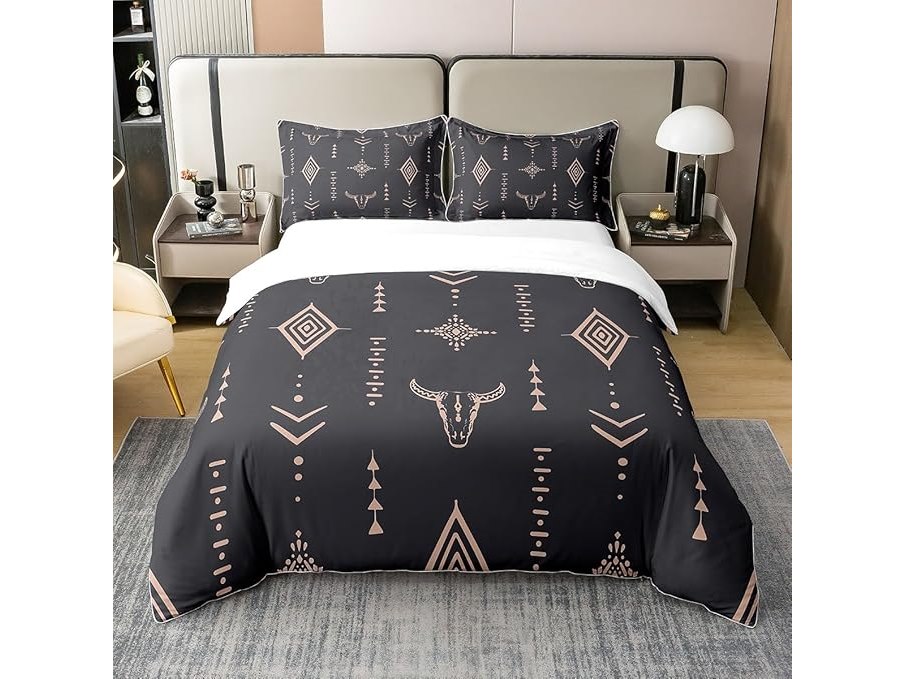 Ongeopend, in seal, Homewish 100% biologisch katoen bulk schedeldekbedovertrek 135 x 200 boho beddengoed set etnische hoorns Boheemse trooster afdekking bruin tribal symbool mysterieuze Azteken kamer decor, B0CCP2V8W6