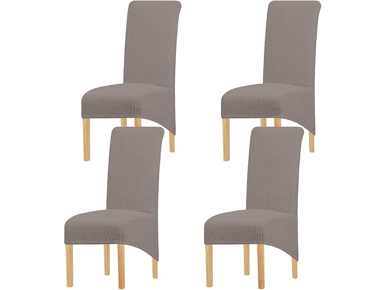 Ongeopend, in seal, LANSHENG Stoelhoezen voor eetkamerstoelen, hoge rugleuning, rekbaar, afneembaar, wasbaar, maat XL, taupe, 6 stuks, B0D9HWR1FZ