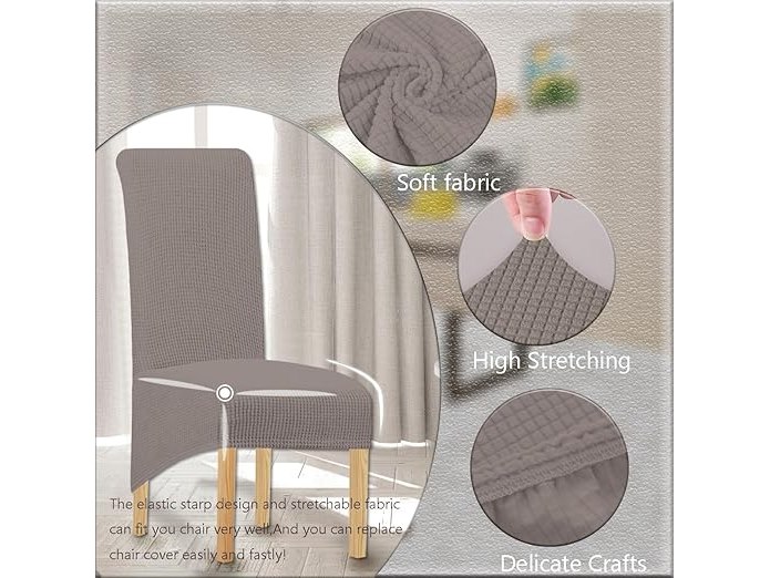 Ongeopend, in seal, LANSHENG Stoelhoezen voor eetkamerstoelen, hoge rugleuning, rekbaar, afneembaar, wasbaar, maat XL, taupe, 6 stuks, B0D9HWR1FZ