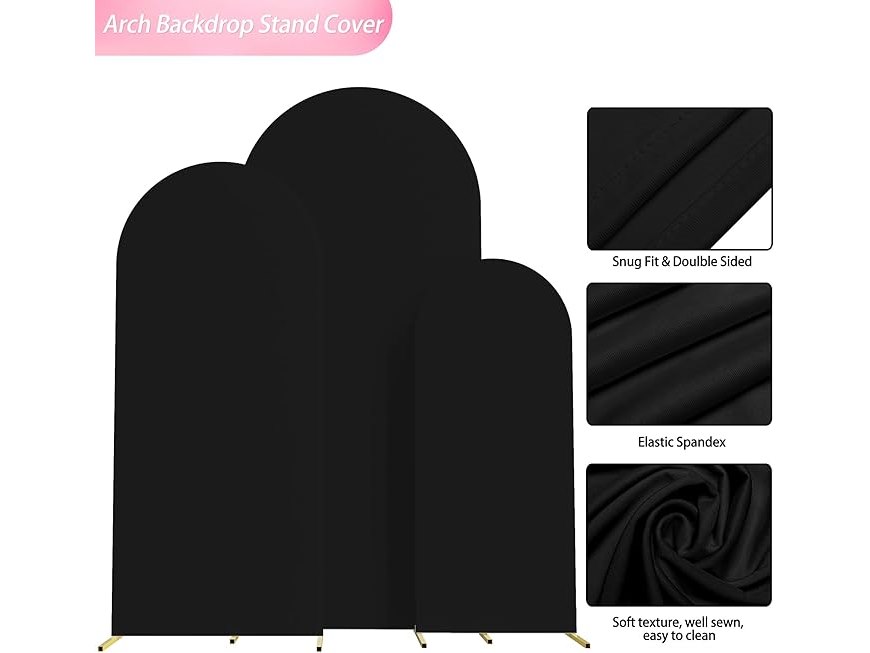 Ongeopend, in seal, Wokceer Trouwboogcover van elastaan, set van 3 stuks, passende trouwboogstandaard, ronde top, Chiara-boog, achtergrond, verjaardagsfeestjes, ceremonie- en banketdecoratie, zwart, 1,2, 1,5, 1,8 m, B0C36VBCMW
