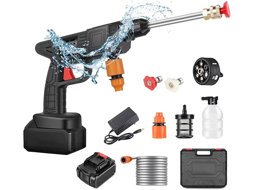 Ongebruikt, getest en werkend, ok, batterij ontbreekt, Yaasier Hogedrukreiniger op batterijen, 48 V, max. 90 bar, draagbare hogedrukreiniger met 6-in-1 multi-spuitmond, 5 m slang, verlenglans, gereedschap voor het reinigen van de auto voor buiten, B0DT5SYSKL