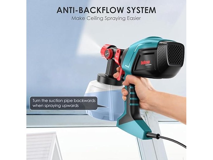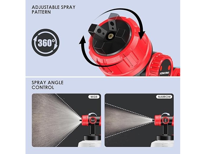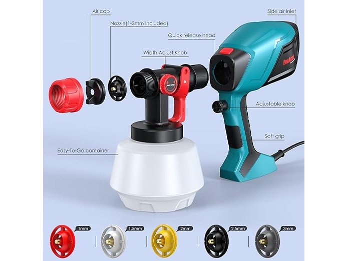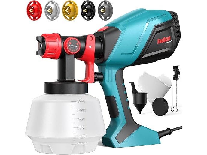 Gebruikssporen, getest en werkend, volledig, ok, ENEACRO HVLP Elektrisch verfspuitpistool, 700 W, met reservoir van 1200 ml, verstelbare doorstroming en sproeihoek, 5 messing spuitmonden voor binnen en buiten, B0D78M7HRQ