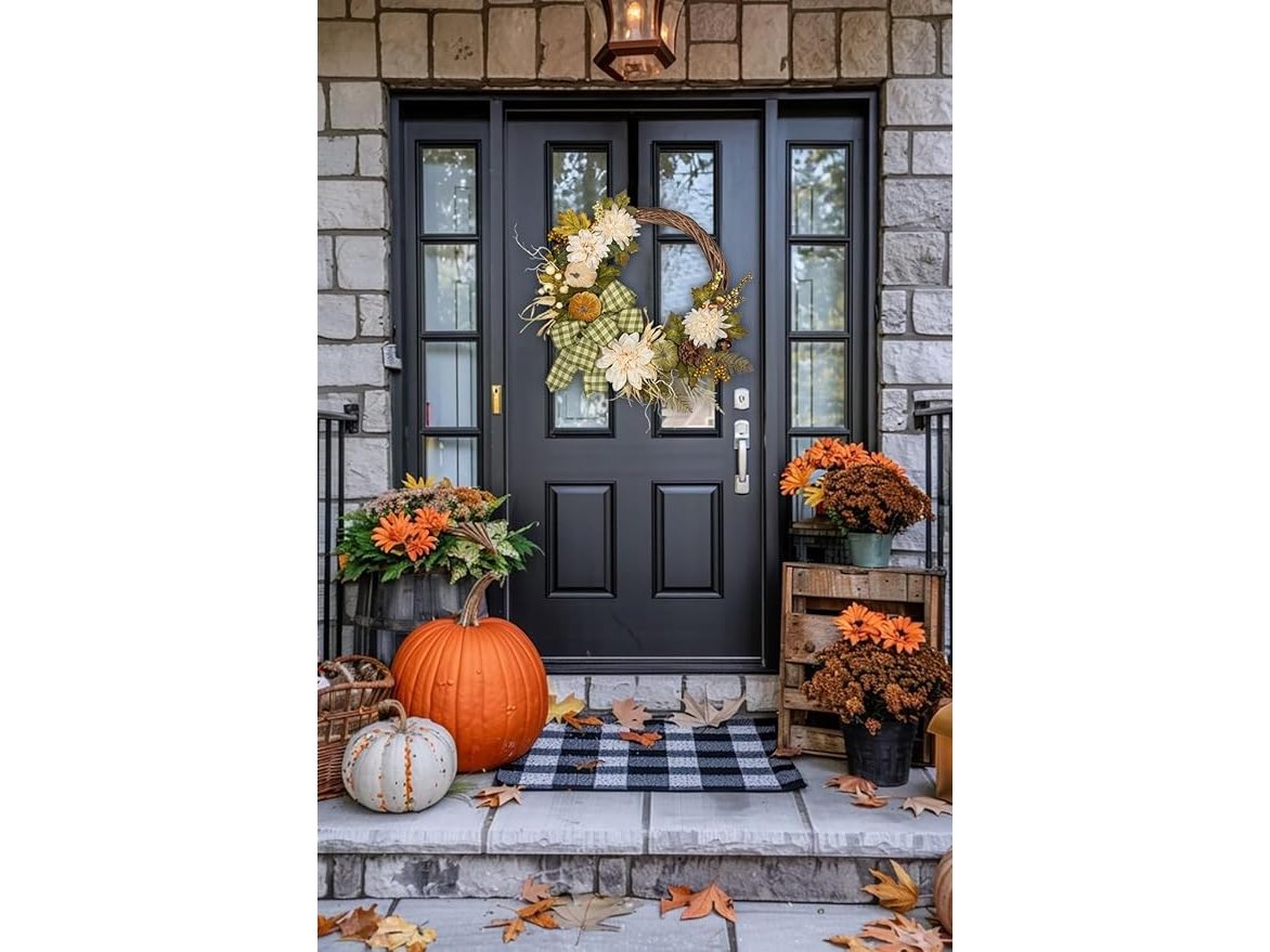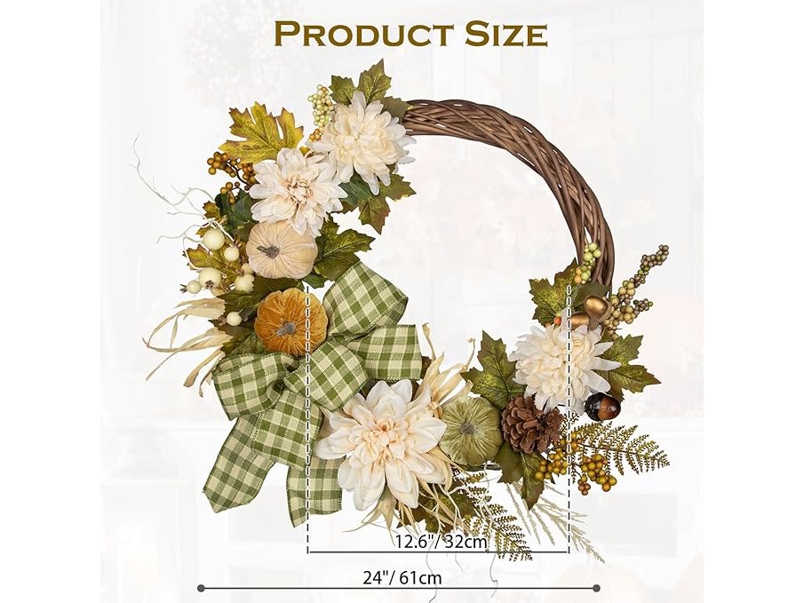 Ongeopend, in seal, Herfstdeurkrans (61 cm) kunstmatige pompoenkrans herfstkrans met fluwelen pompoen, dahlia en strik, herfstkrans voor Halloween, Thanksgiving-krans-ideeën voor je huisdeur, binnen- en buitendecoratie, B0CRB7NZT4