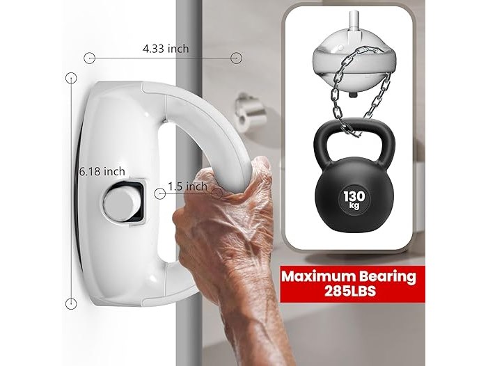 Ongebruikt, getest en werkend, volledig, ok, Loresjoy 2 stuks Douchehandgreep voor Senioren, Douchegreep met 15 cm grote zuignap voor ouderen, Draagbare Mobiele Handgreep Bad met Zuigwaarschuwing, B0CS35BTLQ