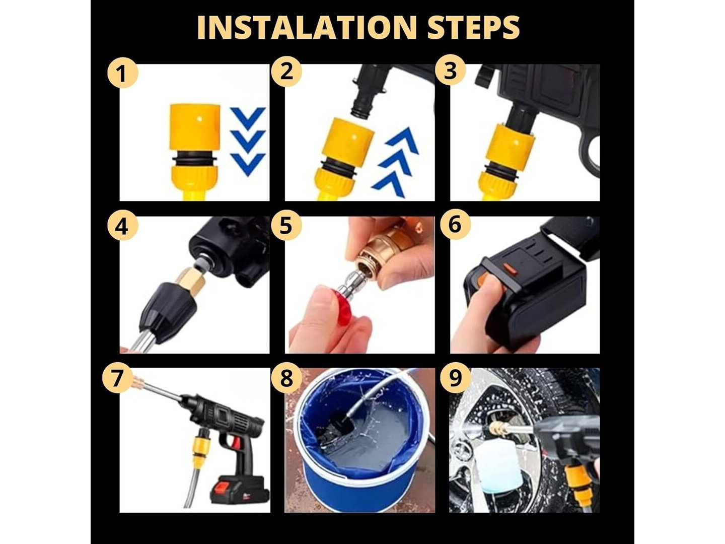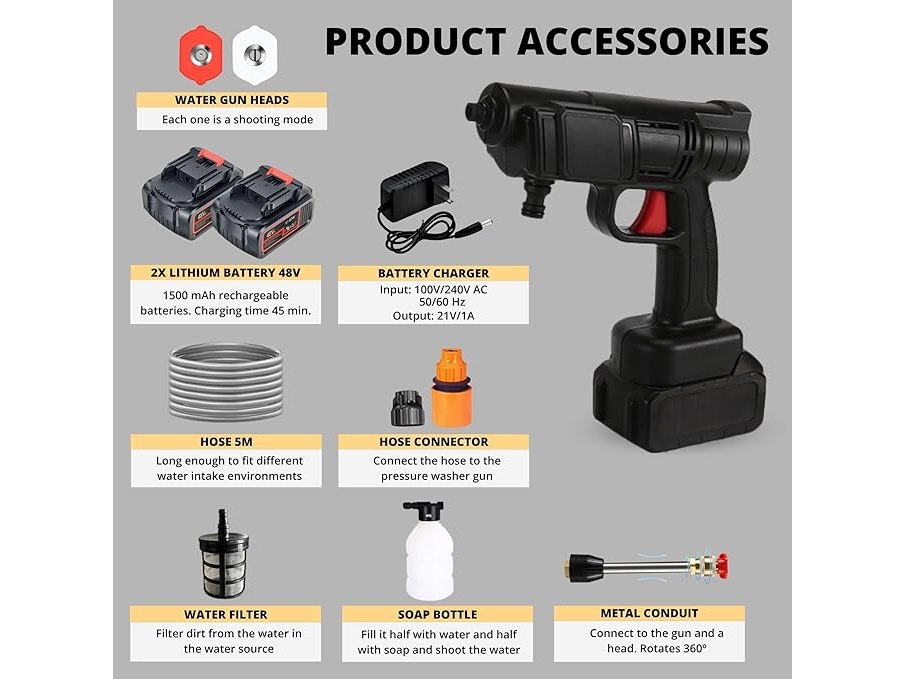 Gebruikssporen, getest en werkend, volledig, ok, Draagbare Hogedrukreiniger. Accu Hogedrukreiniger 48V. Reinigingspistool 35 Bar/500PSI en 1500mAh/300W Hogedrukreiniger met Toebehoren om de Aauto, Tuin, Buiten te Wassen (2 Batterijen), B0DC6JSVY1