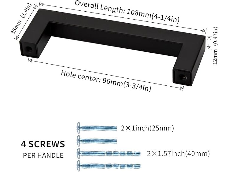 Ongeopend, in seal, LONTAN Meubelgreep, zwart, kastgrepen, boorgatafstand 96 mm, moderne ladehandgrepen, stanggreep, vierkante handgrepen, 20 stuks, B08B844LJY